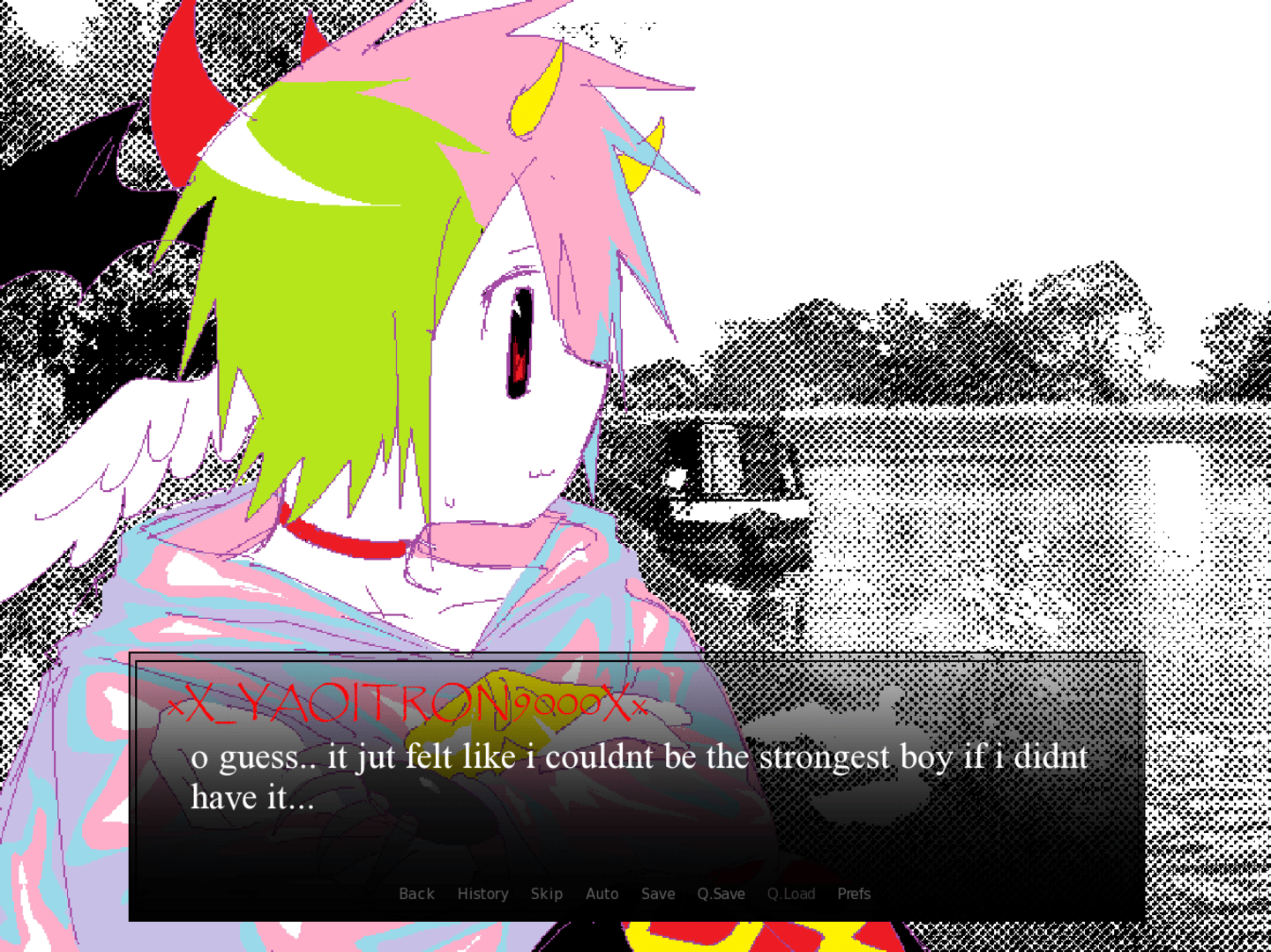 JOB HUNTING 9000 DELUHX is a visual novel about being coerced into dating a shitty overpowered eyestrain 'OC' come to life, with an unnecessary amount of alternative routes as he attempts to help fix your life in the only way he knows how. Find all the routes! Choose your favourite route! Have a gall of a time!