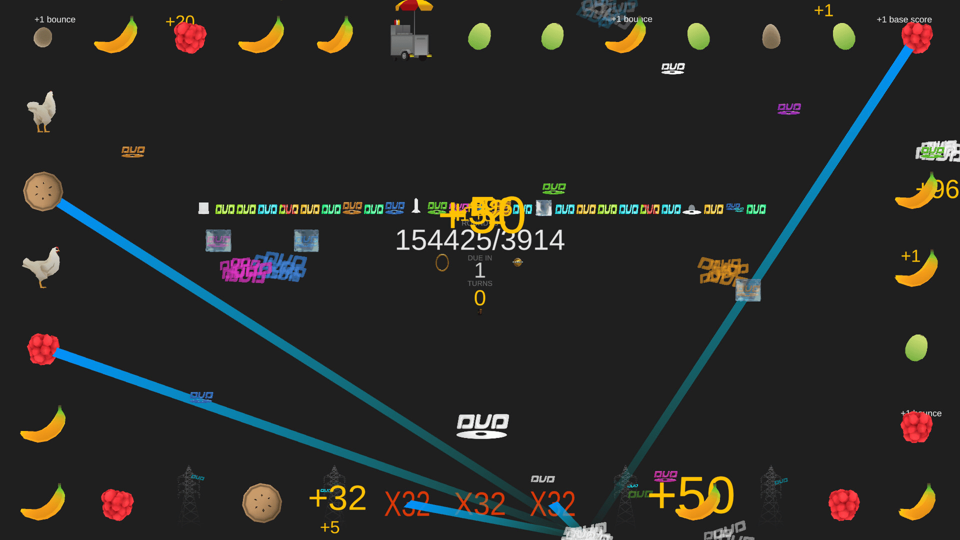A satisfying roguelike where a DUD logo bounces around the edge of the screen, activating special tiles to score larger and larger points. Create powerful builds and synergies to maximise your score and break the game in crazy ways.