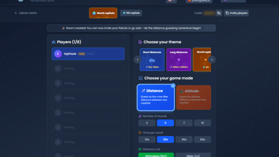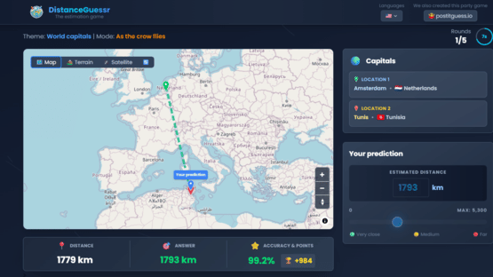 DistanceGuessr is a modern geography guessing game that challenges players to estimate distances and elevation differences between locations around the world. From short hops to long-haul journeys, every guess puts your global intuition to the test. The game features multiple game modes, including distance guessing and elevation difference, along with a wide variety of themes such as short or long distances, capitals, airports, mountains, and major cities. Whether you’re a casual explorer or a geography expert, there’s always a new challenge waiting. Play solo or with friends, compete in duels, climb the global leaderboards, and return daily for fresh daily guesses. Perfect for streaming and community play, DistanceGuessr turns geography knowledge into fast, competitive fun.