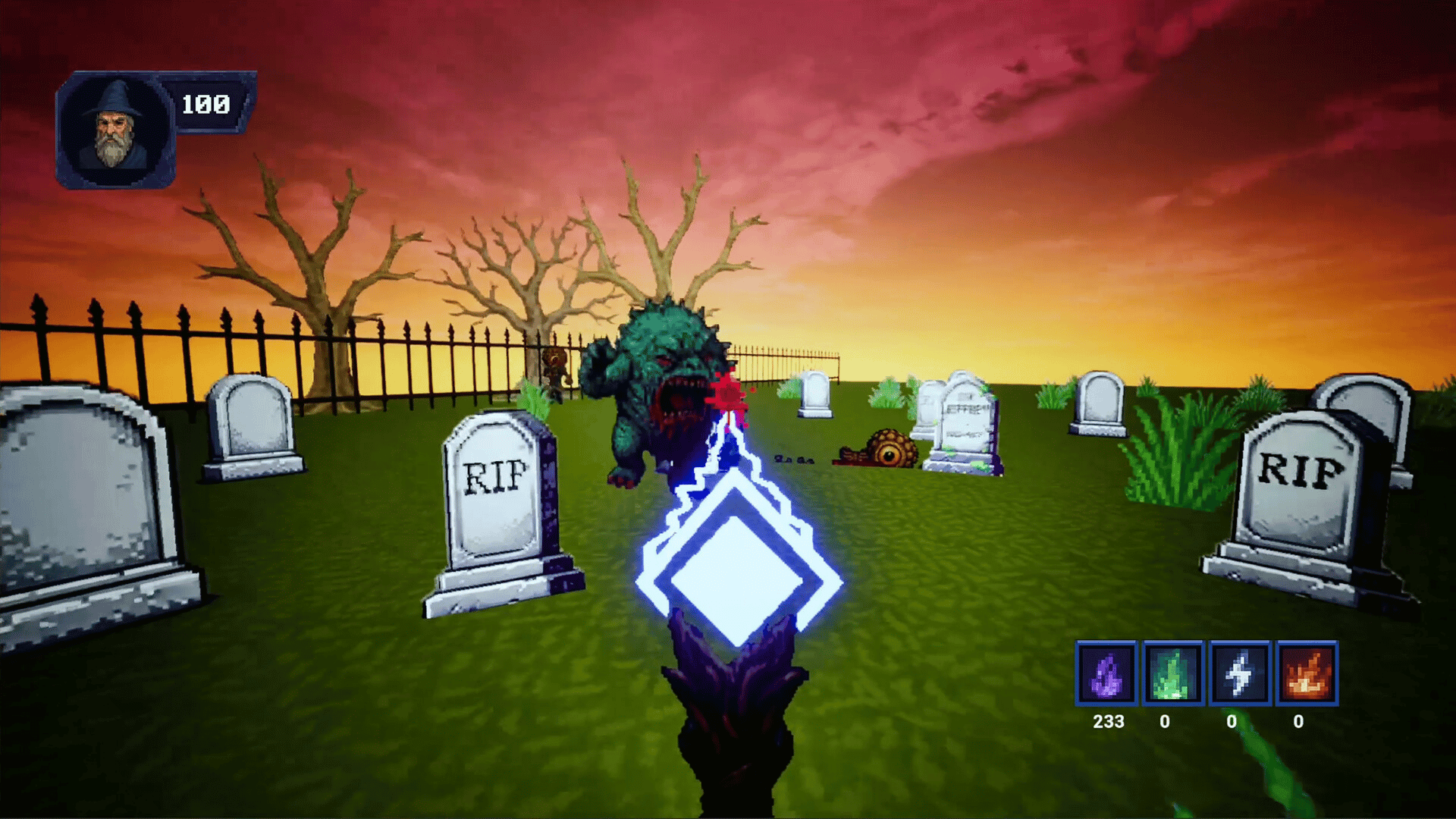 An eerie darkness has emerged. With it came creatures demanding servitude to the Vinegar Mutter. Those who dare to fight have been slaughtered and eaten. In this magic based retro shooter, you take the role of Cymon, a wizard making the journey to the source of the chaos in an effort to stop it.