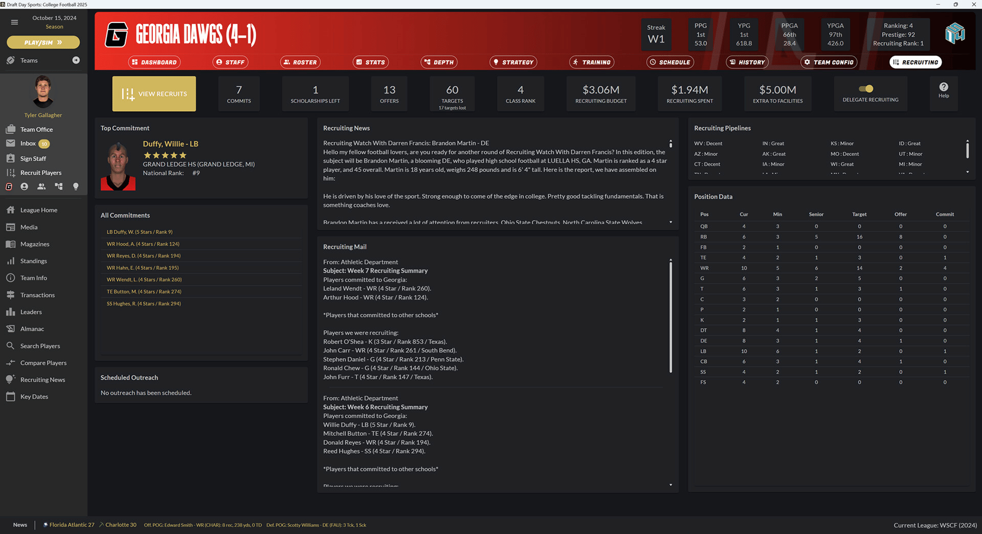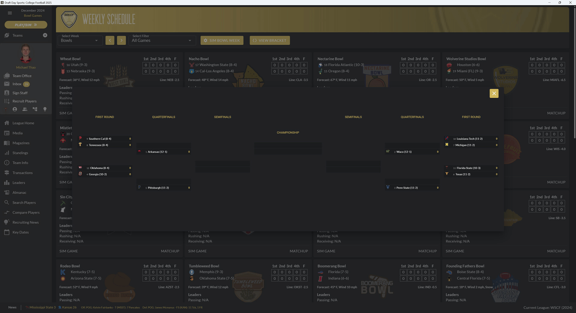 Draft Day Sports: College Football 2025 puts you in the role of head coach for your favorite college football team. Recruit, gameplan, hire a successful staff and make the right calls on the field to lead your team to the top of the ranks and the college football championship.