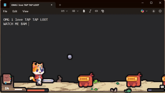 The world is under attack, and every tap fights back. Each keystroke unleashes your cute cat hero, smashing enemies and showering you with loot. Dive into a never-ending desktop expedition with friends or solo. Tap. Tap. Loot.