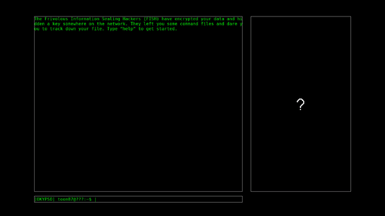 HACK.BAK is a terminal-based hacking game where the user searches a procedurally generated network for commands in order to decrypt their data which was sealed by hackers.