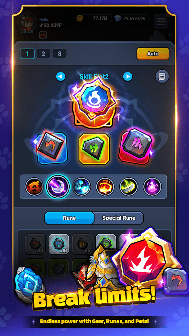 Go Go Wolf is a stylized idle RPG where you follow the journey of Rang, an ordinary girl who transforms into a powerful werewolf after eating a magical tomato. Battle waves of monsters through fast-paced hack-and-slash action, customize your hero with unique wolf costumes, and master strategic skill combinations to become the ultimate warrior.