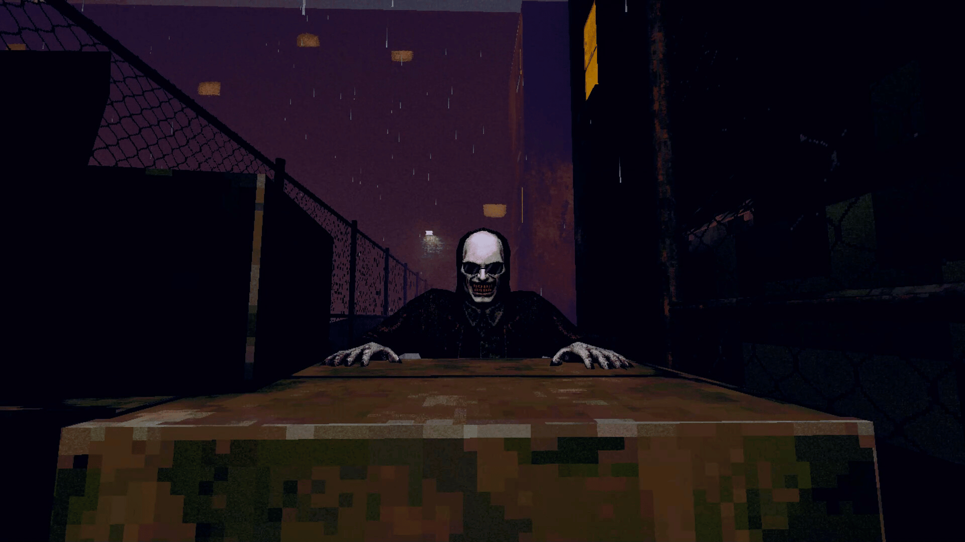 The Skin Stapler is a retro-styled PSX grindhouse horror adventure set in the rotting, crime-soaked sprawl of Carrion City. Players follow jaded detective Dick Slater and his eager rookie partner Robbie Knox as they hunt a mysterious serial killer known only as The Skin Stapler.