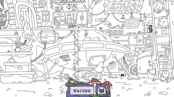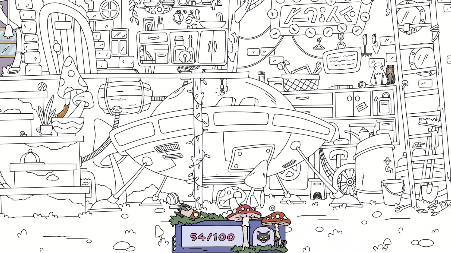 Explore a mysterious alien world, find cute cats, and paint black-and-white locations with bright cosmic colors.
