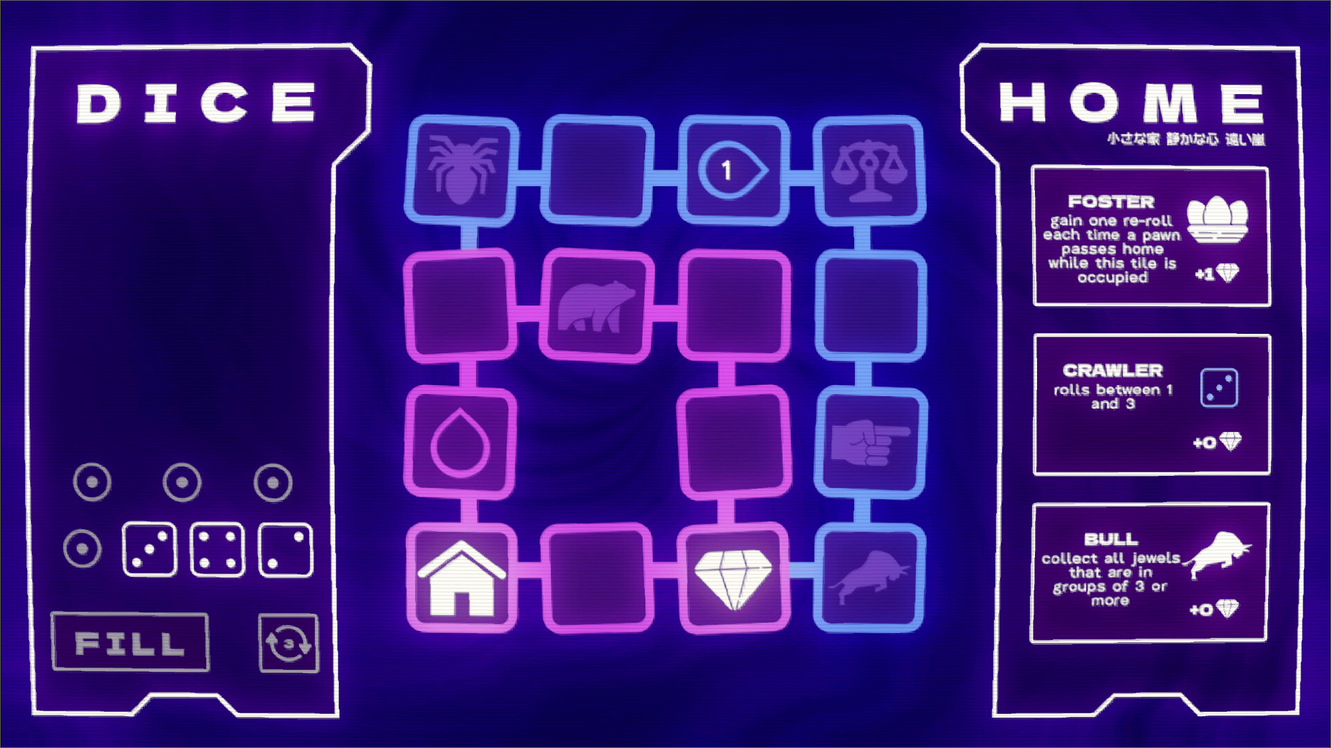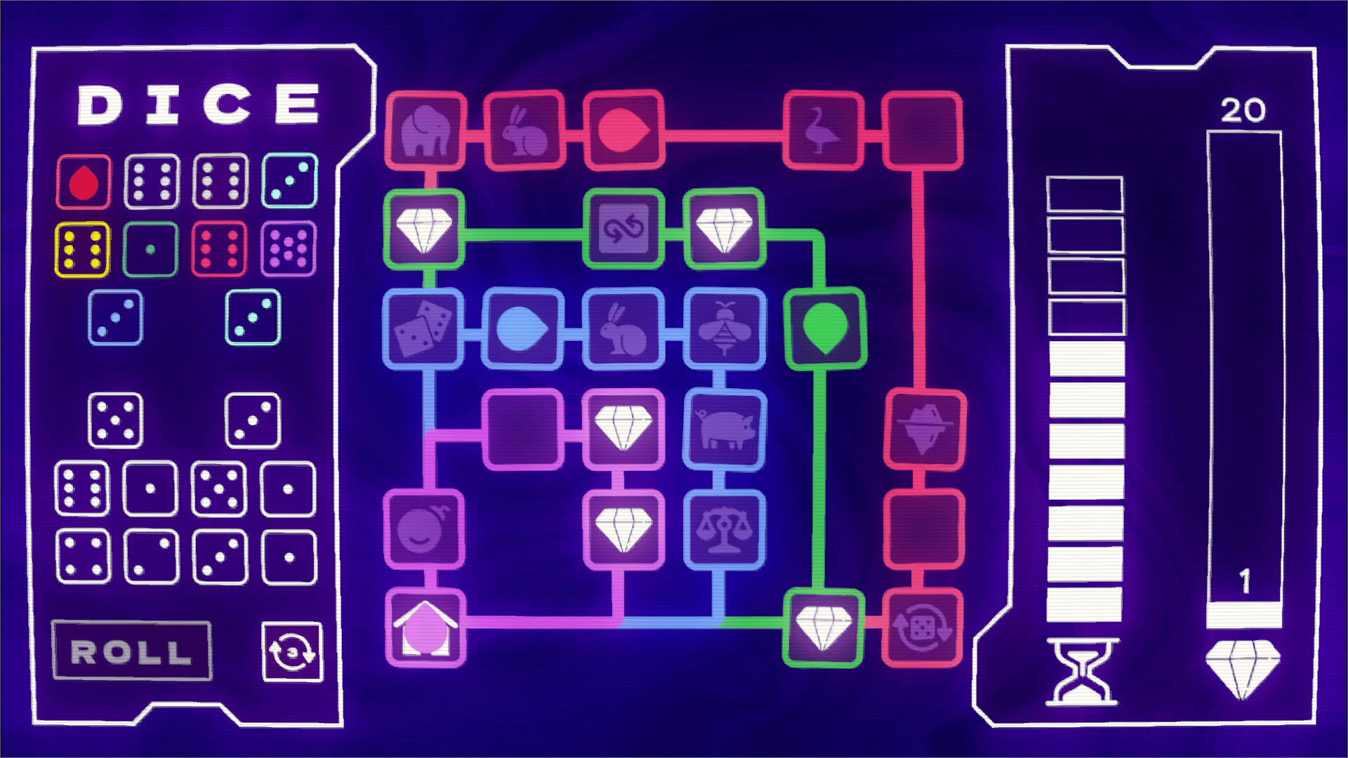Koromeke is a game of simple rules and rich tactics which forces you to think on your feet. Collect enough jewels to survive your laps around the looping board, choosing from over 50 different upgrades to make every run unique. With limitless mind-bending synergies to discover, can you find the combos that tip the odds back in your favor?