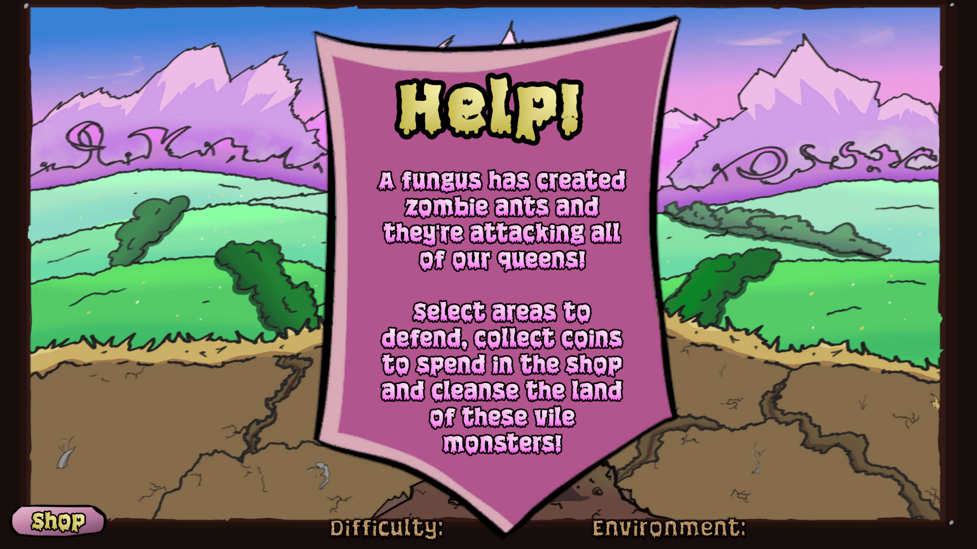 Many ants have become infected by the cordyceps fungus and are attacking their queens! Place ants (towers) along the paths of zombie ants and hopefully save every queen! Features: - Bespoke 2D art and animation - Multiple biomes - Original music - Satisfying ant deaths - Charming environments