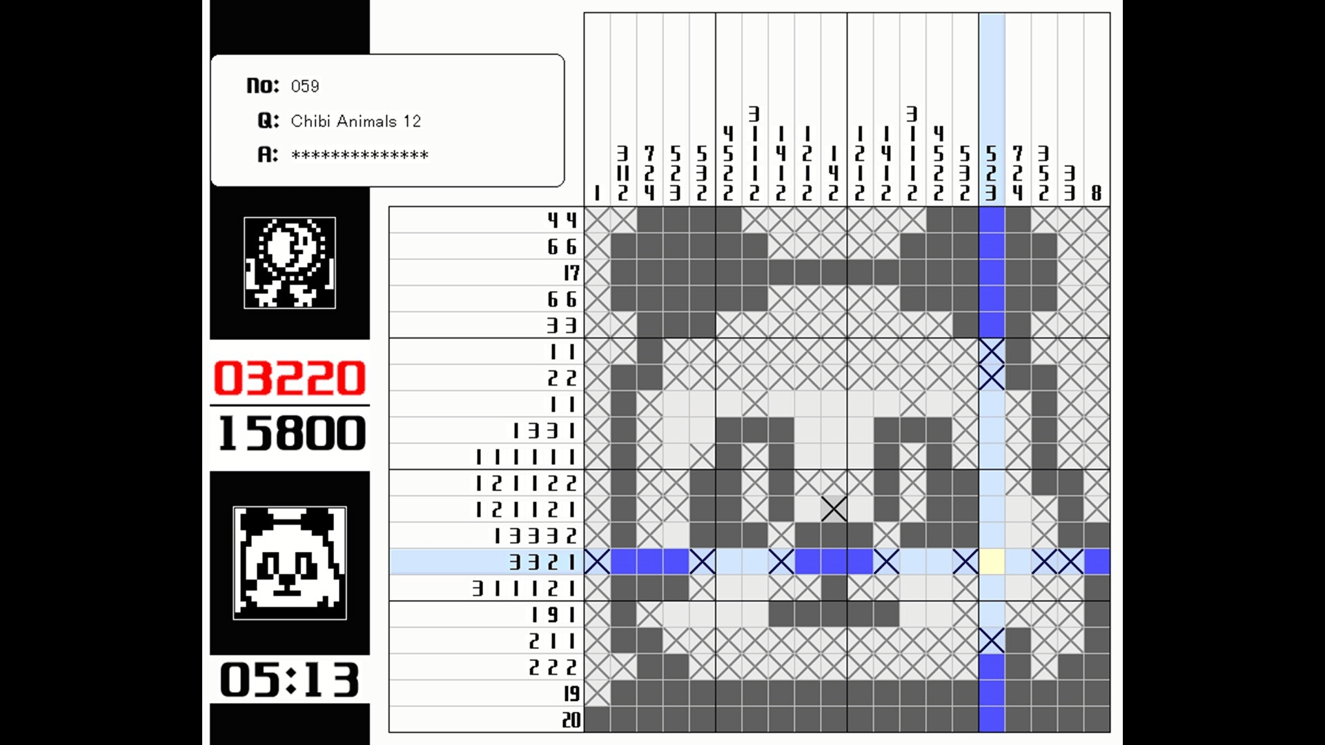 This game is for players who simply want to enjoy nonograms. There are no flashy effects at all, and it feels like solving paper puzzles from magazines using a mouse on your computer. It includes 1600 B&W puzzles sized 20x20 and 300 color puzzles up to 15x15, for a total of 1900 puzzles.