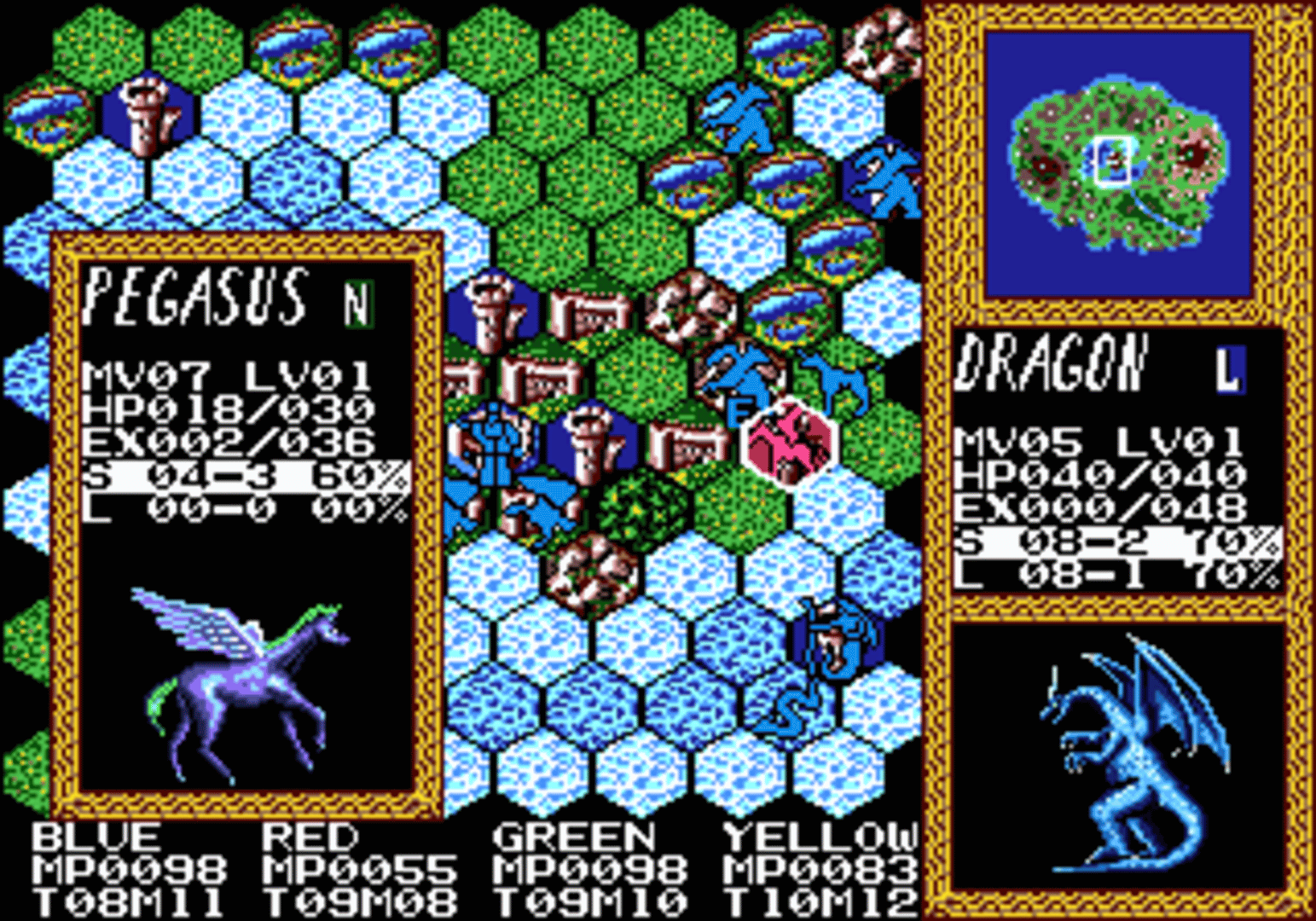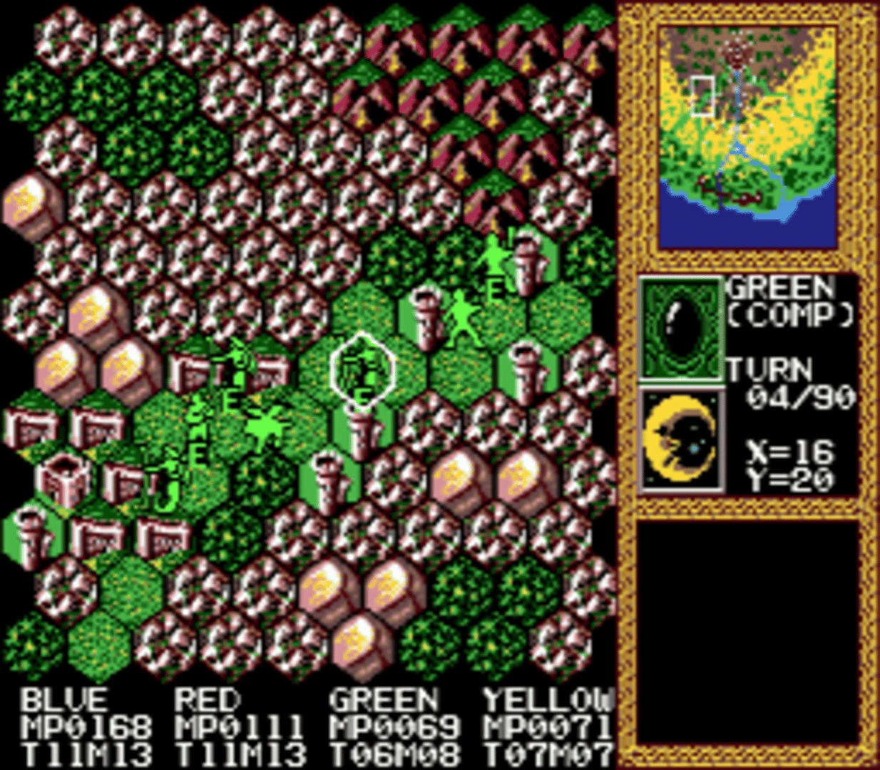 The Genesis/Mega Drive port of "Master of Monsters". Master of Monsters is a turn-based strategy game developed by SystemSoft for the MSX and NEC PC8801. It was ported to a variety of consoles and PCs including the PC Engine CD, NEC PC9801, and Sega Genesis/Mega Drive. While it never had the same success as its SystemSoft stablemate Daisenryaku, the game garnered a loyal following. Its success in the North American market on the Sega Genesis proved sufficient for a sequel on the Sega Saturn, and an anime art-style enhanced Sony PlayStation version. A European release for Mega Drive was planned by Ubisoft but it did not materialise.