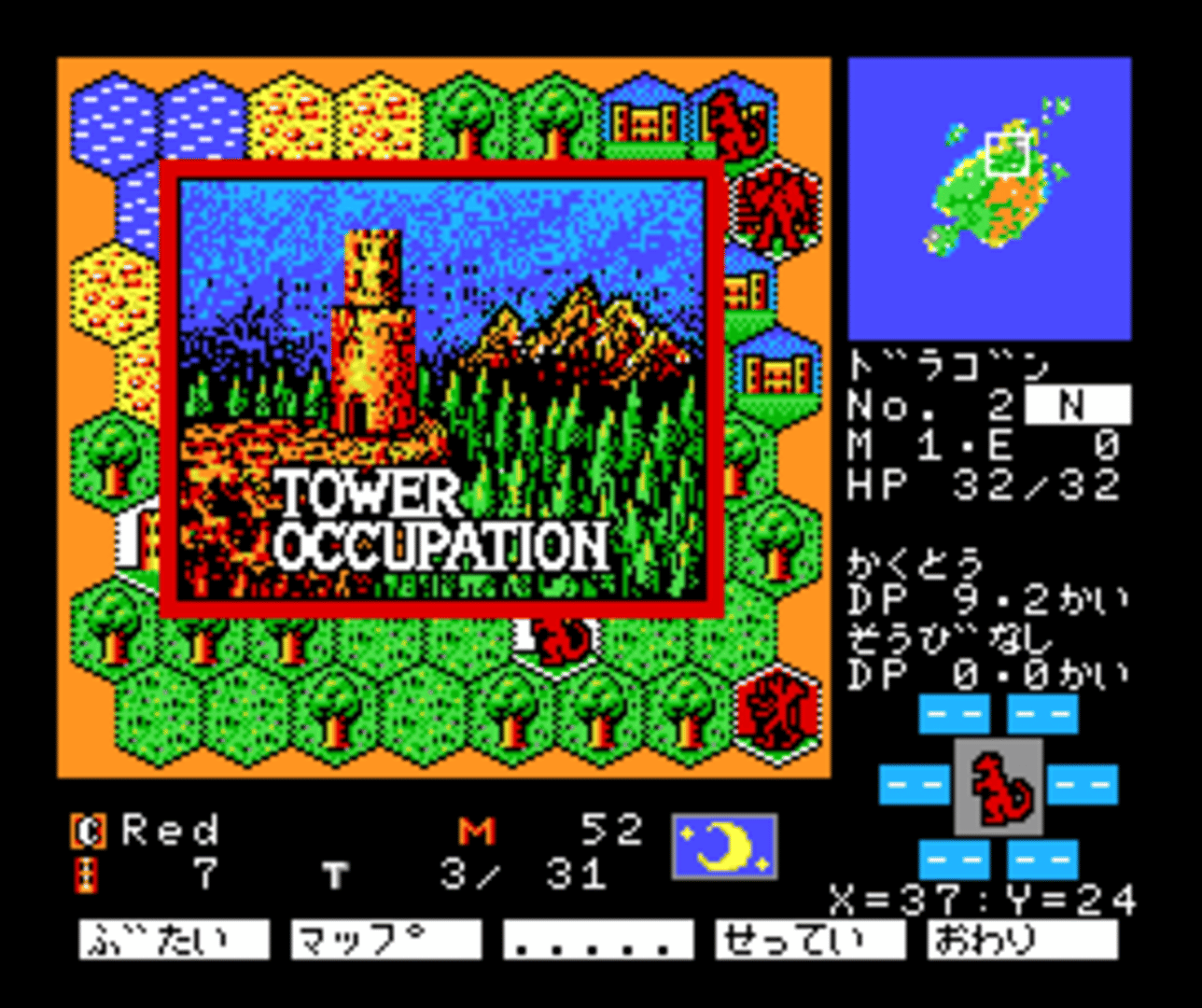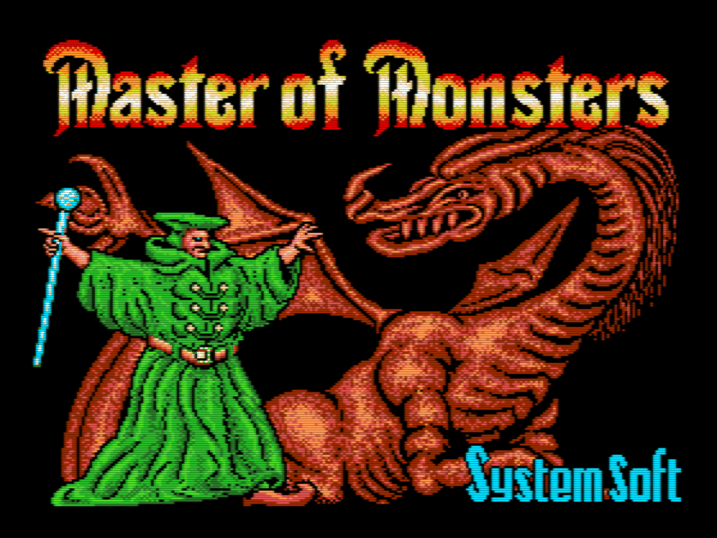 MSX2 port of "Master of Monsters". Master of Monsters is a turn-based strategy game in which you choose one of five different wizards and fight the other wizards for domination of the land that stands without a ruler after the master wizard's death. You can play in two campaigns against the computer which requires you to defeat the enemy wizards on all maps and allows you to take all units that have survived a battle into the next one. You can also play all maps individually with up two four human players. In battles, you can summon different monsters and cast spells. Which monsters you can summon and which spells you can use depends on which wizard you have chosen.