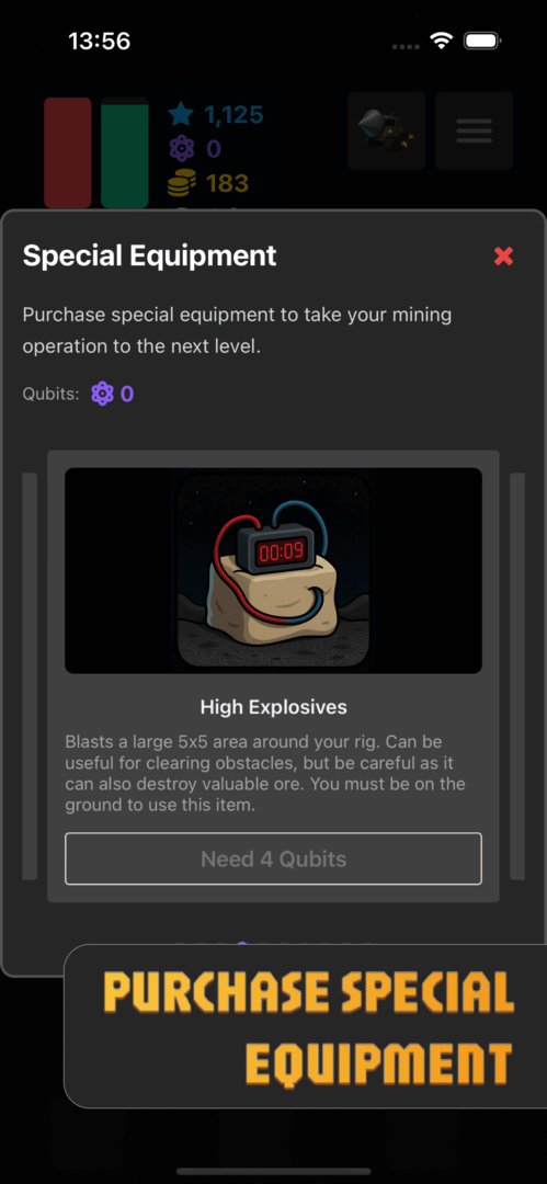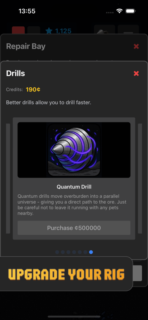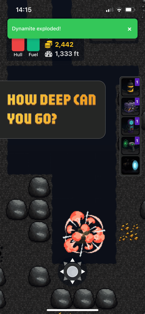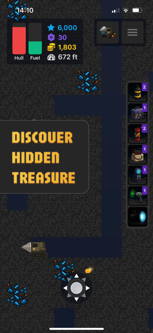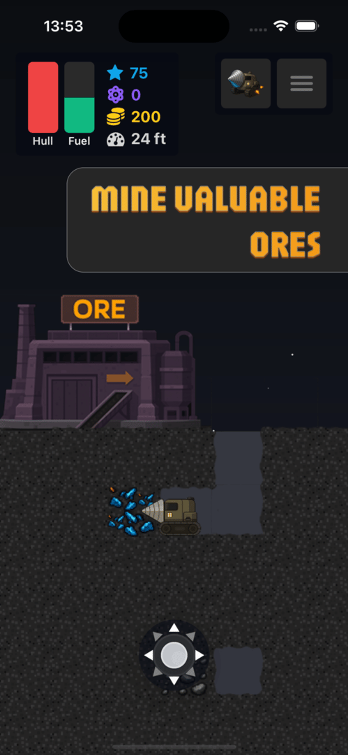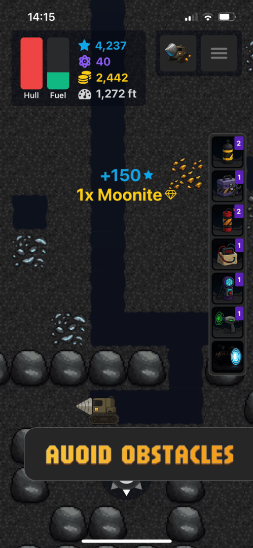 Paydirt: Moon Miner is a fun, physics-based 2D mining game set on the Moon. Pilot your upgradeable rig through shifting lunar caverns, mine rare ores, and uncover what lies beneath the surface. Balance fuel, damage, and hull integrity as you descend deeper and drill in search of fortune — or risk losing everything to gas pockets and whatever else lies below.