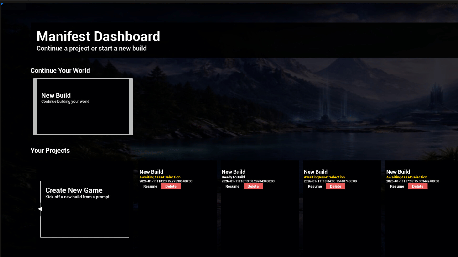 Manifest Anything is a playable sandbox game where players create, explore, and play fully interactive games within the experience itself. Players control a character inside generated 3D environments, navigate worlds, test mechanics, and immediately play the games they build in real time. Using an in-game project creator and an AI companion, players generate interactive worlds, gameplay systems, and scenarios directly inside the game. Creation and play are tightly connected: players can explore environments, trigger mechanics, and iterate on their ideas by playing them instantly rather than exporting to an external editor. Gameplay includes designing core game systems such as menus, objectives, user interfaces, and win or loss conditions. Players define gameplay rules and outcomes, then playtest those systems inside the same session. Each project functions as a complete, playable game experience rather than a static builder. The current version includes a project creator, playable demo environments, and AI-assisted systems for assembling maps, assets, gameplay mechanics, and basic progression. As development continues, additional environments, assets, driving mechanics, and gameplay systems are planned to expand the variety and depth of games that players can create and play