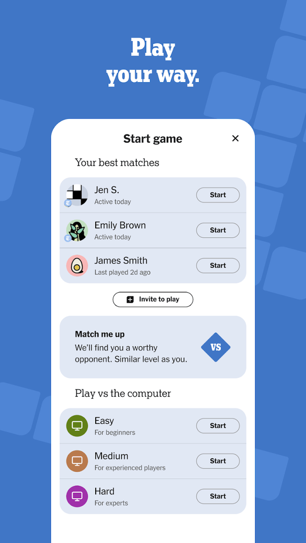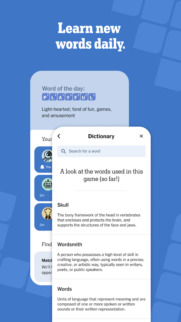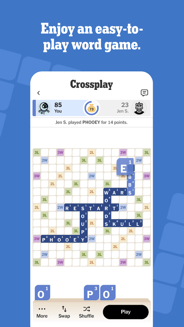 Go word-to-word. Challenge yourself or friends in this 2-player word board game Play with friends, compete and connect with Crossplay, a new 2-player word game from NYT Games that blends socializing and strategy. Play distraction-free, build words and use built-in tools to learn, improve and win, or simply enjoy the challenge.