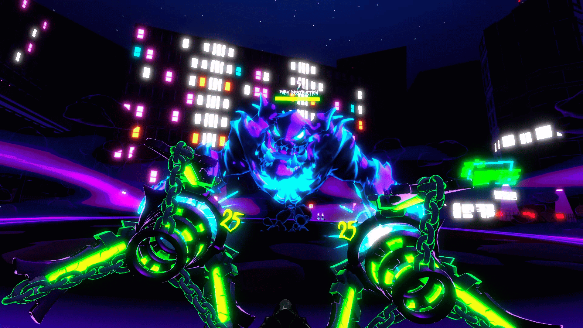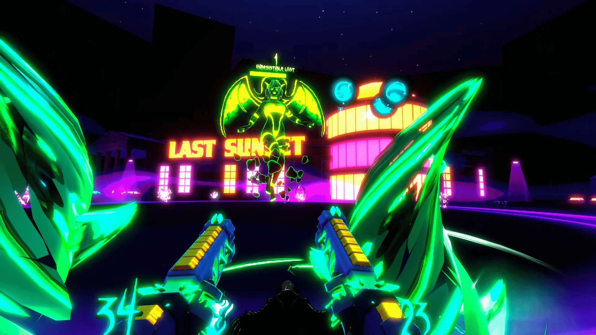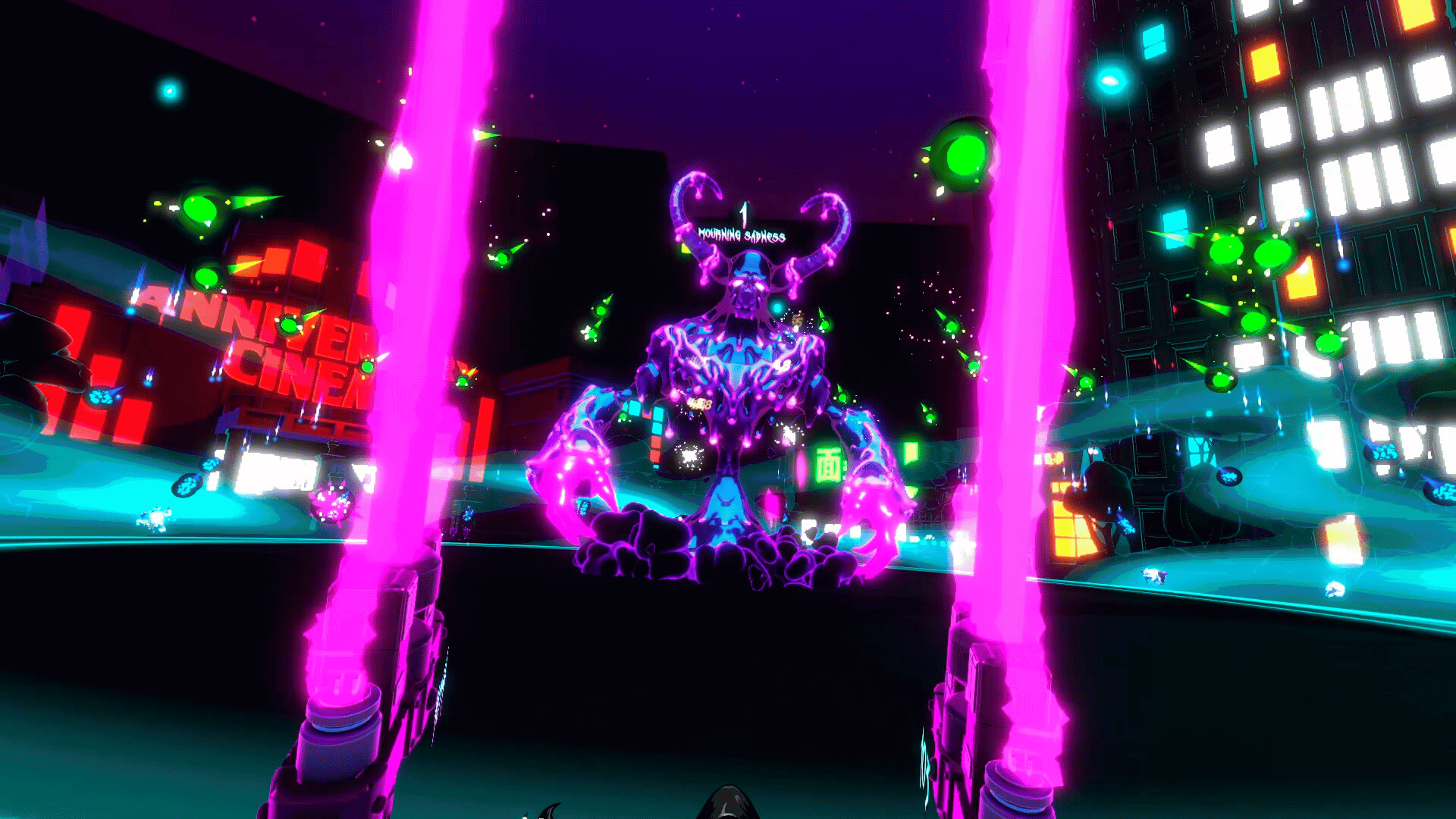 Fast-paced VR roguelite bullet-hell set in a neon-drenched demon city. Master five unique weapon types, stack over 40 perks, and cleanse the streets from twelve demon bosses, four mega bosses, and one ultimate embodiment of sin.