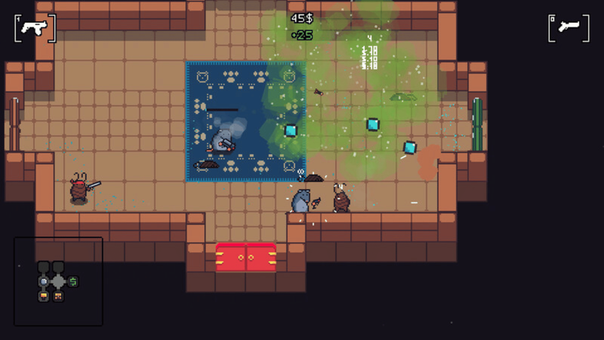 In this fast-paced action roguelike, play as the Rodent Company, a ragtag team of mice, rats, hamsters, guinea pigs, and others, trying to save their kind from going hungry in the coming winter. Competing factions like pirate roaches, raccoon gangs, heathen lizards, and others stand in your way. Defeat them, loot them, and search for abundant lands and treasures beyond! In solo or co-op (up to 4 players), use powerful weapons and special, rodent-based, abilities to mow down deadly pest hordes, defeat epic bosses, and make your way to the bountiful lands beyond the borders of your lands. Build Your Arsenal and Wipe Out Pests! Wield randomly-generated weapons with different add-on modules like scopes, stocks, under-barrel attachments and magazines with MILLIONS of possible combinations. Find new weapons in chests, loot them from your enemies, or buy them from shops! Play with friends! Rodent Company is best experienced with friends! Featuring local co-op up to 4 players, arenas are designed for player counts individually so difficulty doesn't simply scale enemy health and damage - it adjusts battle size too!