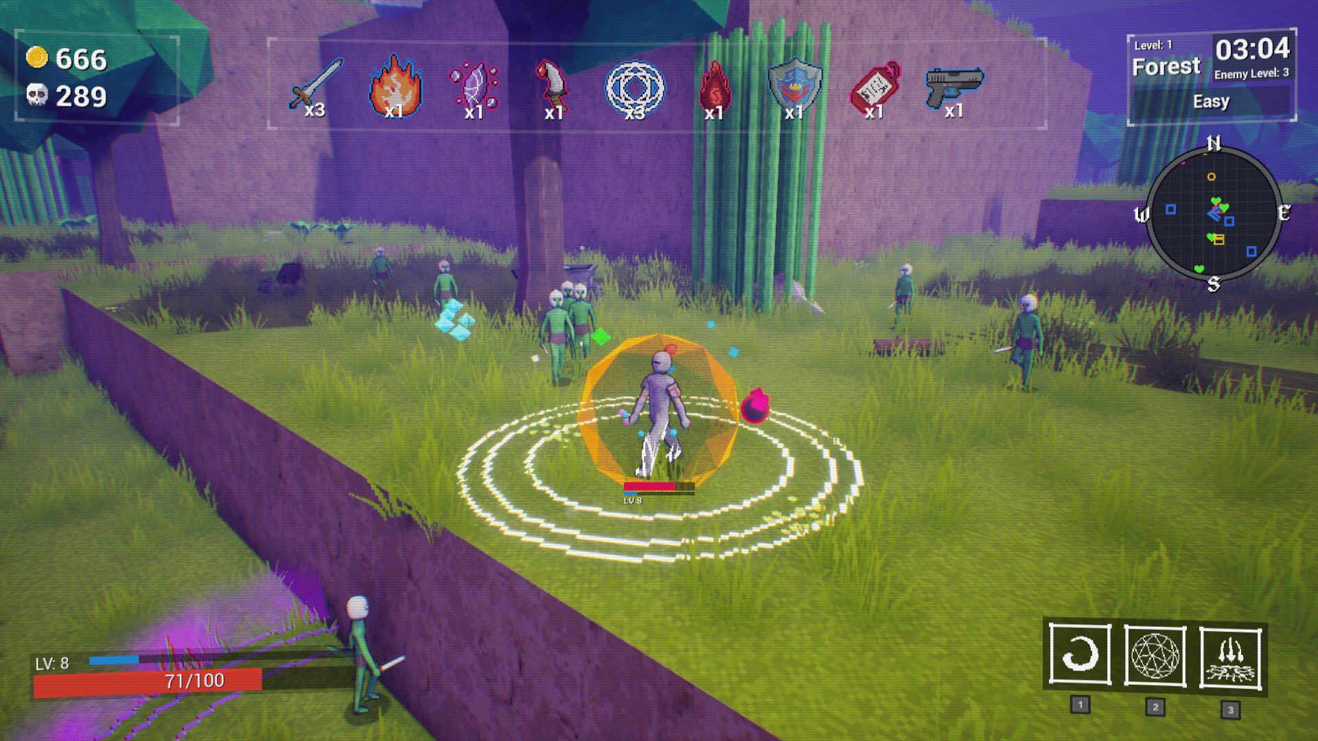Gather items and kill endless waves of enemies! Level-up, unlock characters with different abilities, powerups, items and locations!
