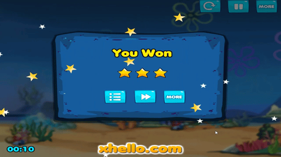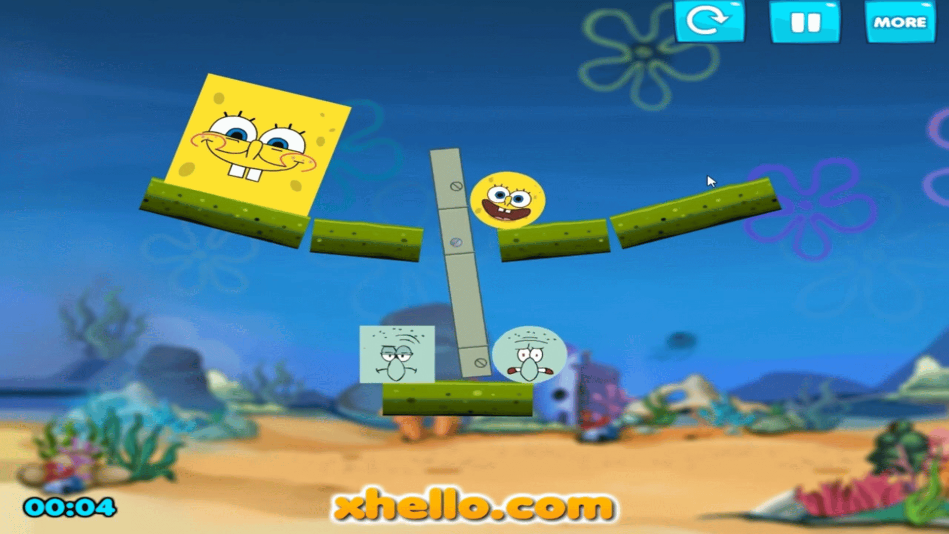 An unofficial Spongebob themed puzzle game, very similar to the Flash game "Red Remover." The game features 20 levels in which the player must use the mouse to remove any and all Squidward shapes (either circles or squares) from the screen, while simultaneously preventing any SpongeBob shapes from falling off the screen. Once all the Squidward shapes have been removed, the level is completed, and the player is given a star ranking based on their performance.