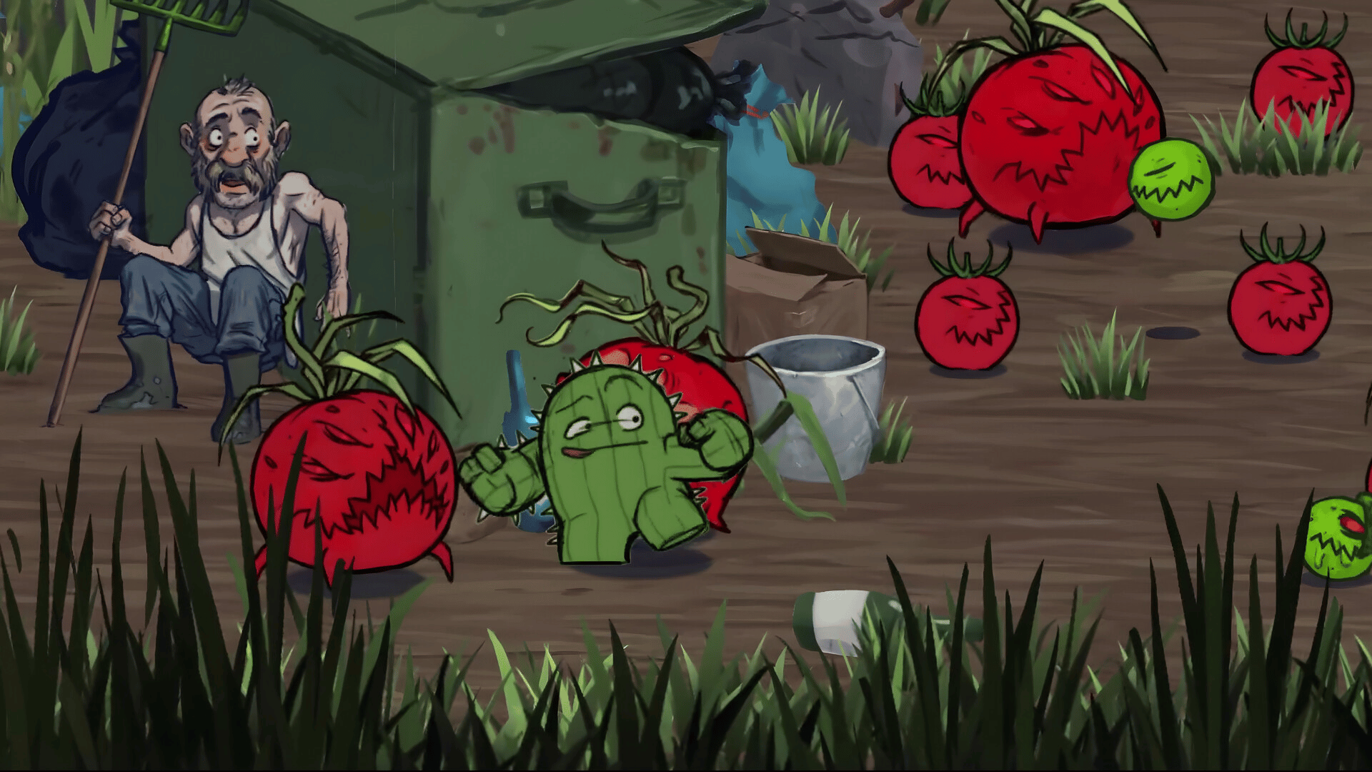 Vegelypse is a 2.5D hand-painted beat 'em up with roguelite grit. Take control of the Hard Rock Cacti Band - smash, crush, and chop your way through hordes of mutated, monstrous vegetables and fruits. The Vegelypse Has Begun!