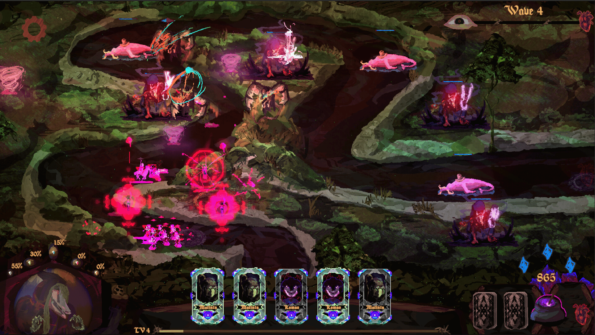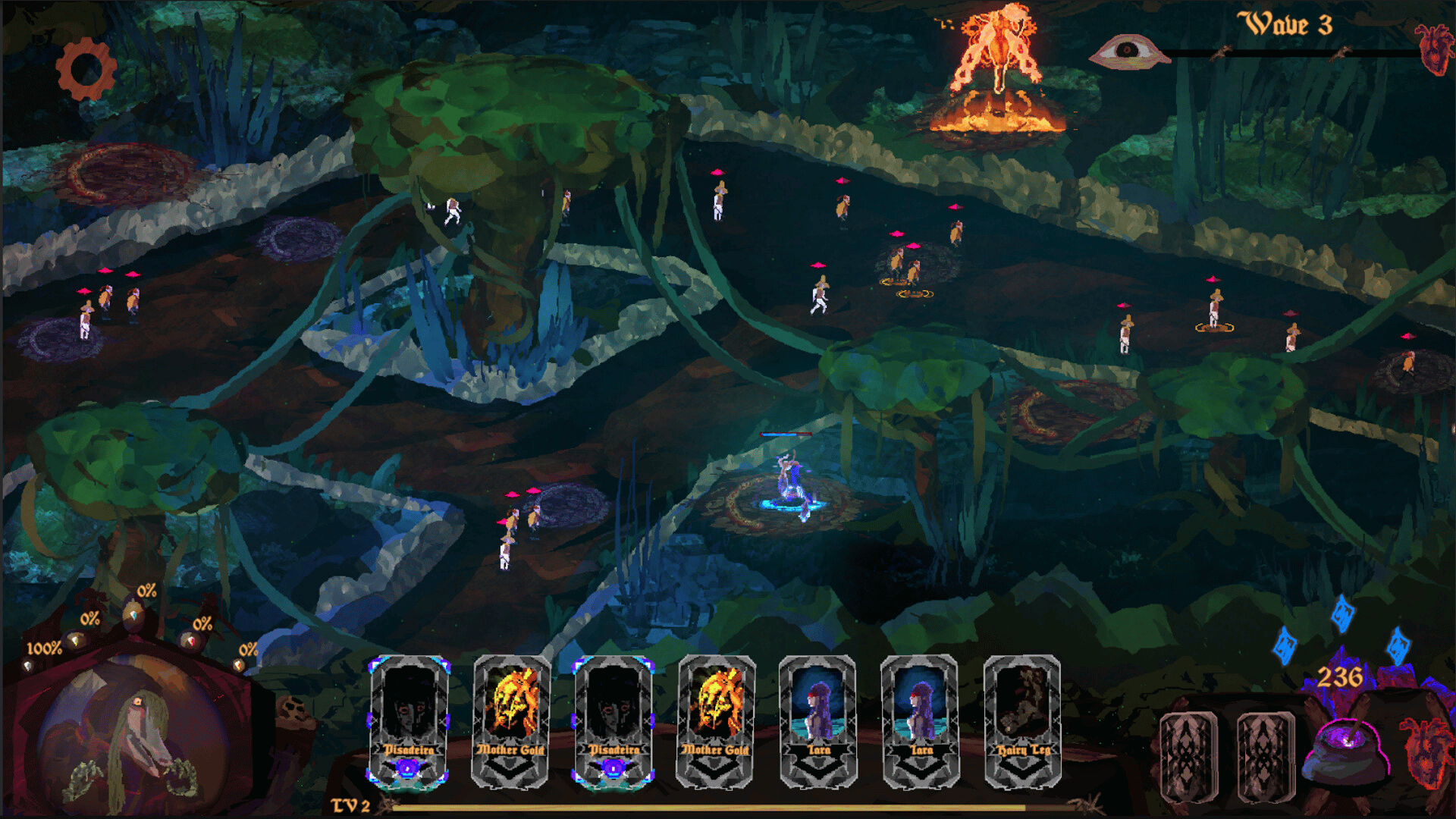 A tower defense game that blends Brazilian folklore myths with card management. Protect the forest by summoning the creatures that dwell within the wilds. As invaders push deeper into the untamed woods, the witch Cuca merely watches their movement, waiting for the perfect moment to strike.