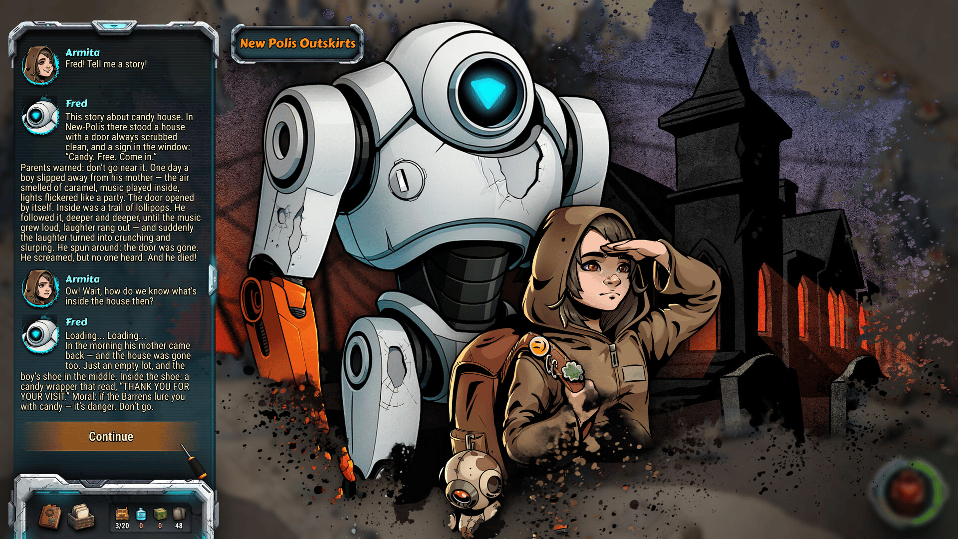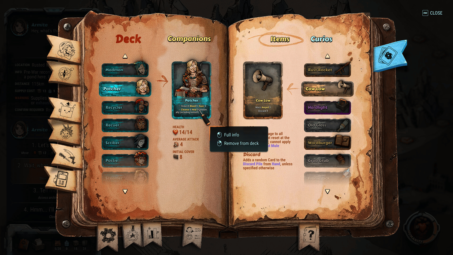 A post-apocalyptic parenting adventure in a story-driven tactical deckbuilder. Hire unique companions, assemble your deck from their gear and scavenged loot, survive turn-based battles, and shape Armita's humanity: teach her mercy or harden her into a Raider to make it through.