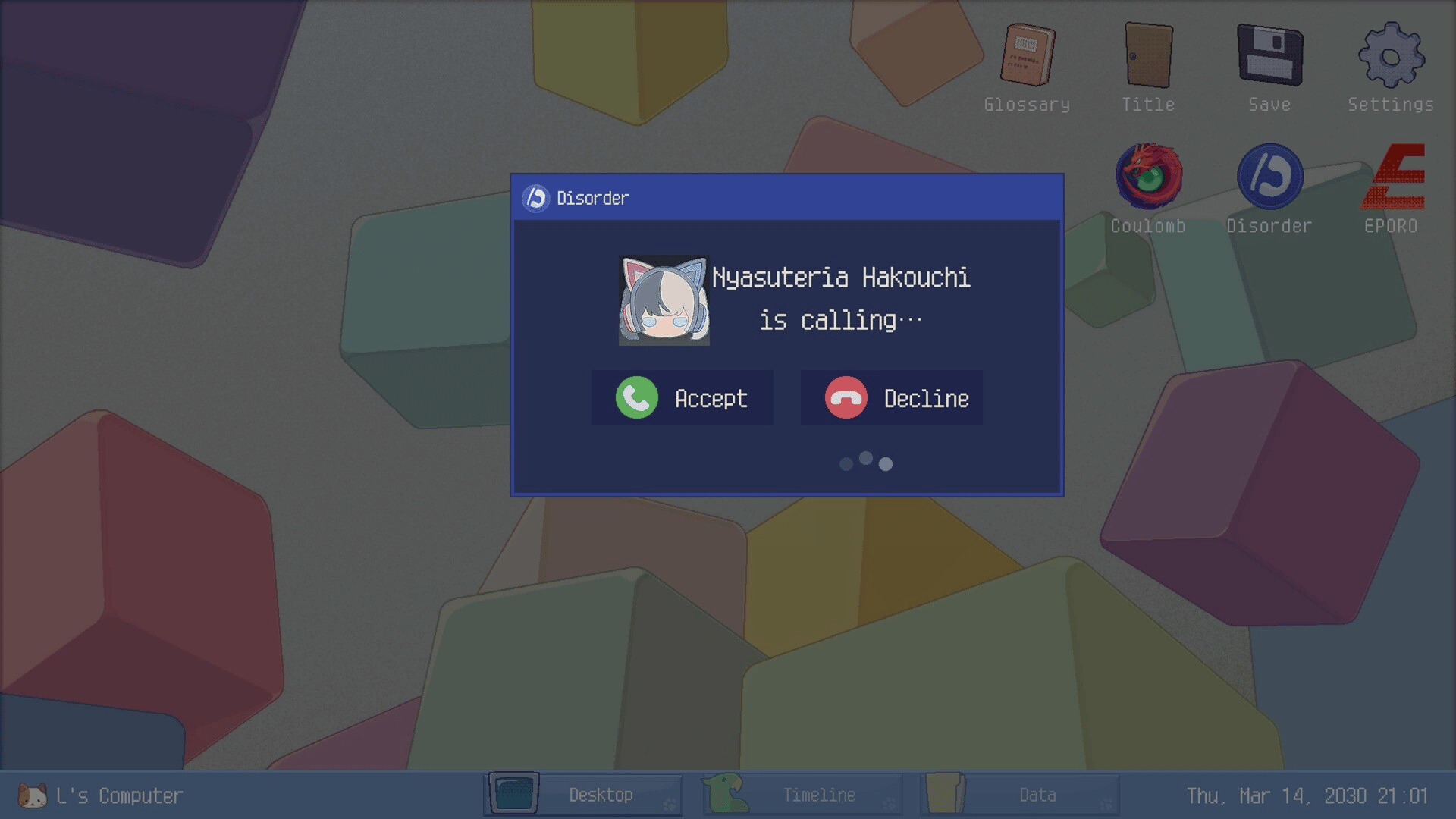 Cyber Detective L solves Paradoxes—bizarre incidents by supernatural Demons—via the social media giant Parrotter. The Cyber Detective Squad, L and his Demon partner Nyasuteria, wield elite hacking and psychic powers to take on the final Paradox investigation.