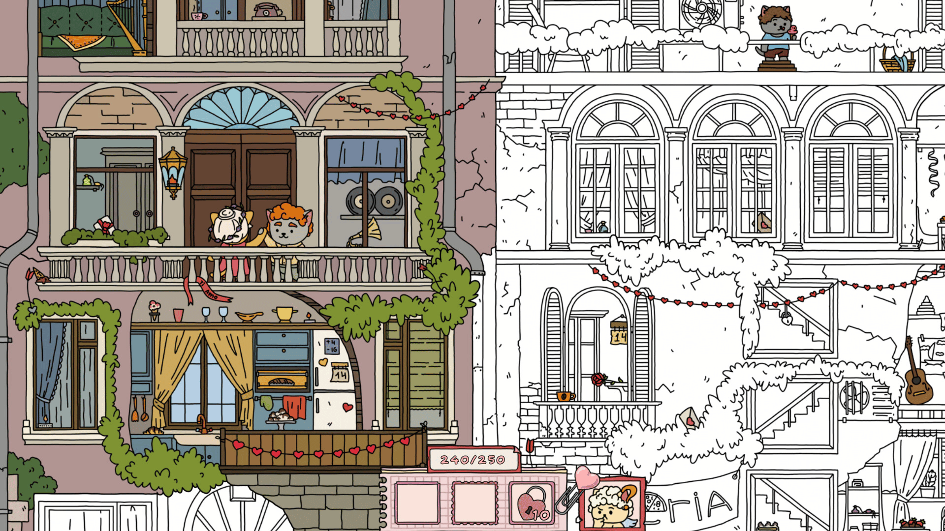 Test your attention and go on a look for different items with your loved one. Explore the cozy waterways of the town on Valentine's Day and find all the hidden objects to make the black-and-white picture burst into bright colors.