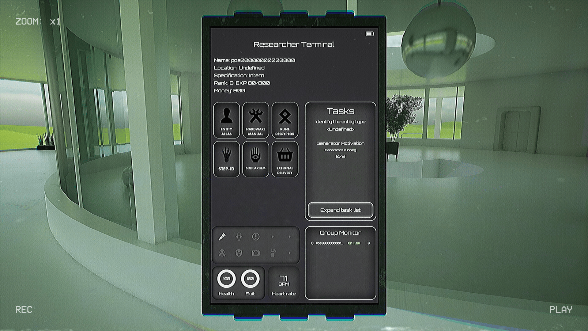 First-person psychological co-op investigation horror. Players act as researchers, completing tasks and gathering evidence to identify various entity types.