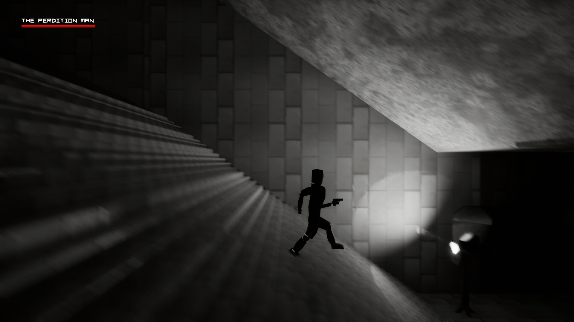 The Perdition Man: Interval is a side scrolling run n' gun steeped in heavy atmosphere. You are alone on your mission and unable to control what you see and what you are about to do. In this single player campaign you must traverse platforming sections and push on through hordes of haunting enemies.