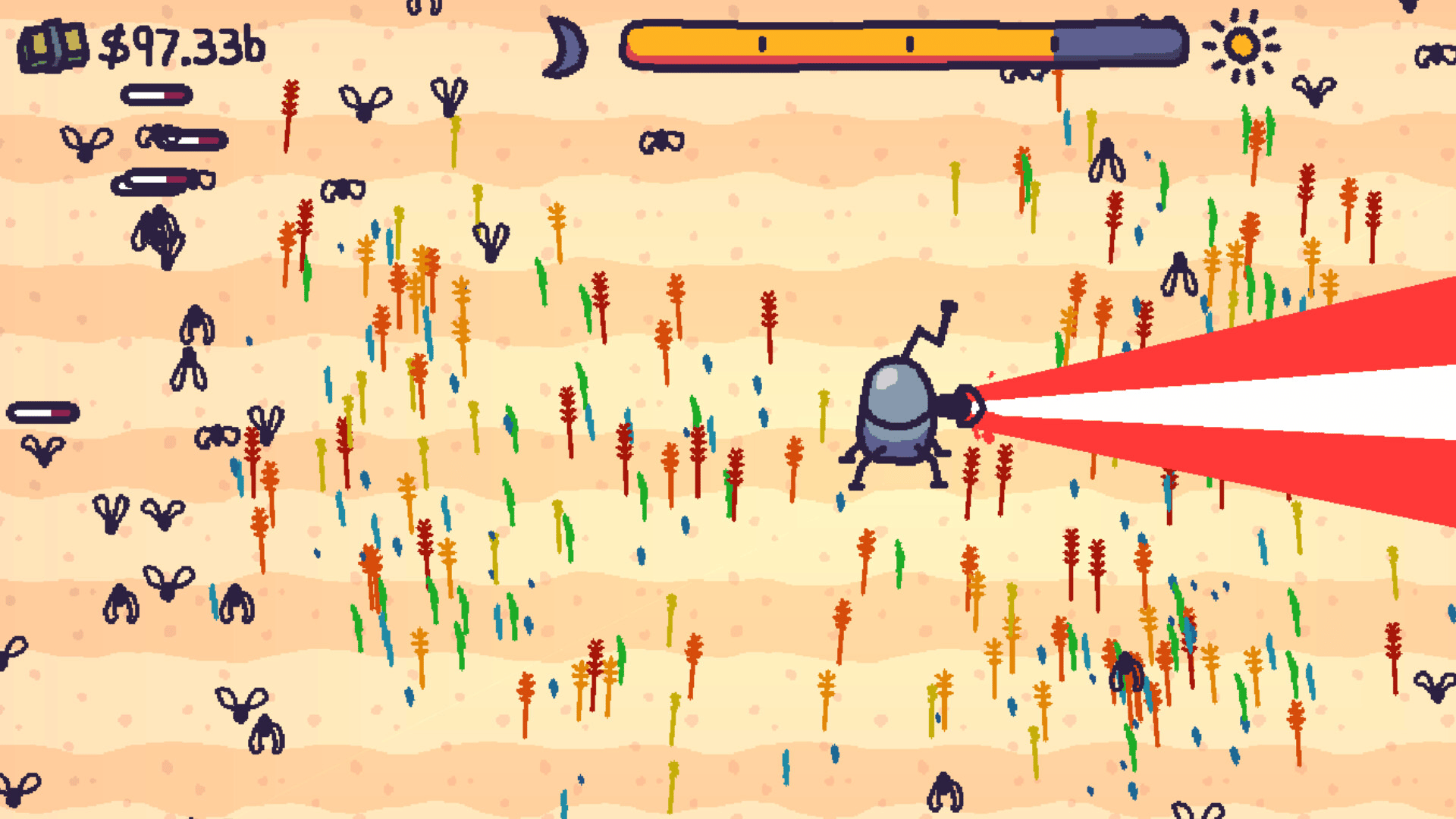 Incinerate various pests with your giant laser, as you grow your farm. Purchase incremental upgrades to expedite the process.