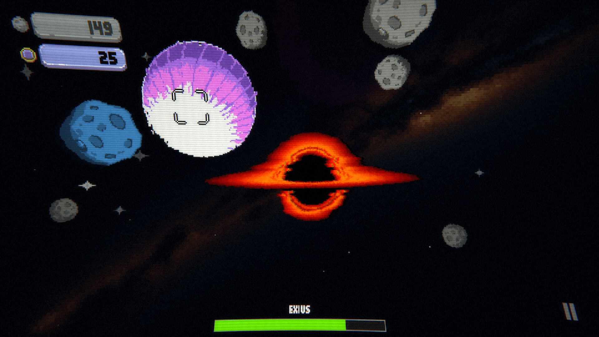 Galaxy Grinder is a fast-paced incremental game where you destroy planets and asteroids with your cursor and weapons. Earn resources, unlock new worlds, and grow stronger through upgrades, skills, and power-ups between runs.