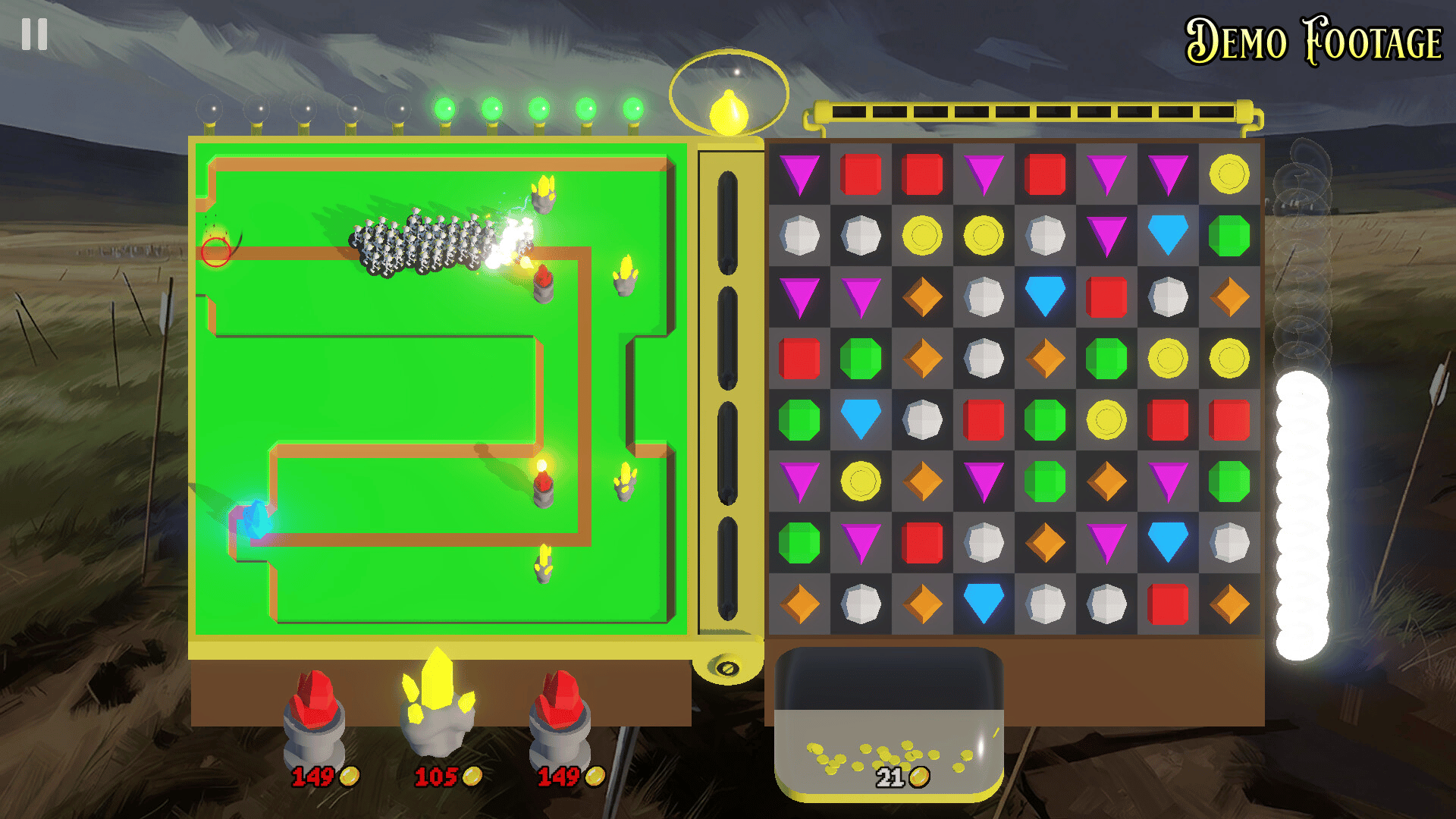 Tower defense empowered by match 3 puzzle strategy. Level up and unlock potentially game-breaking upgrades. Design your own levels and share them.