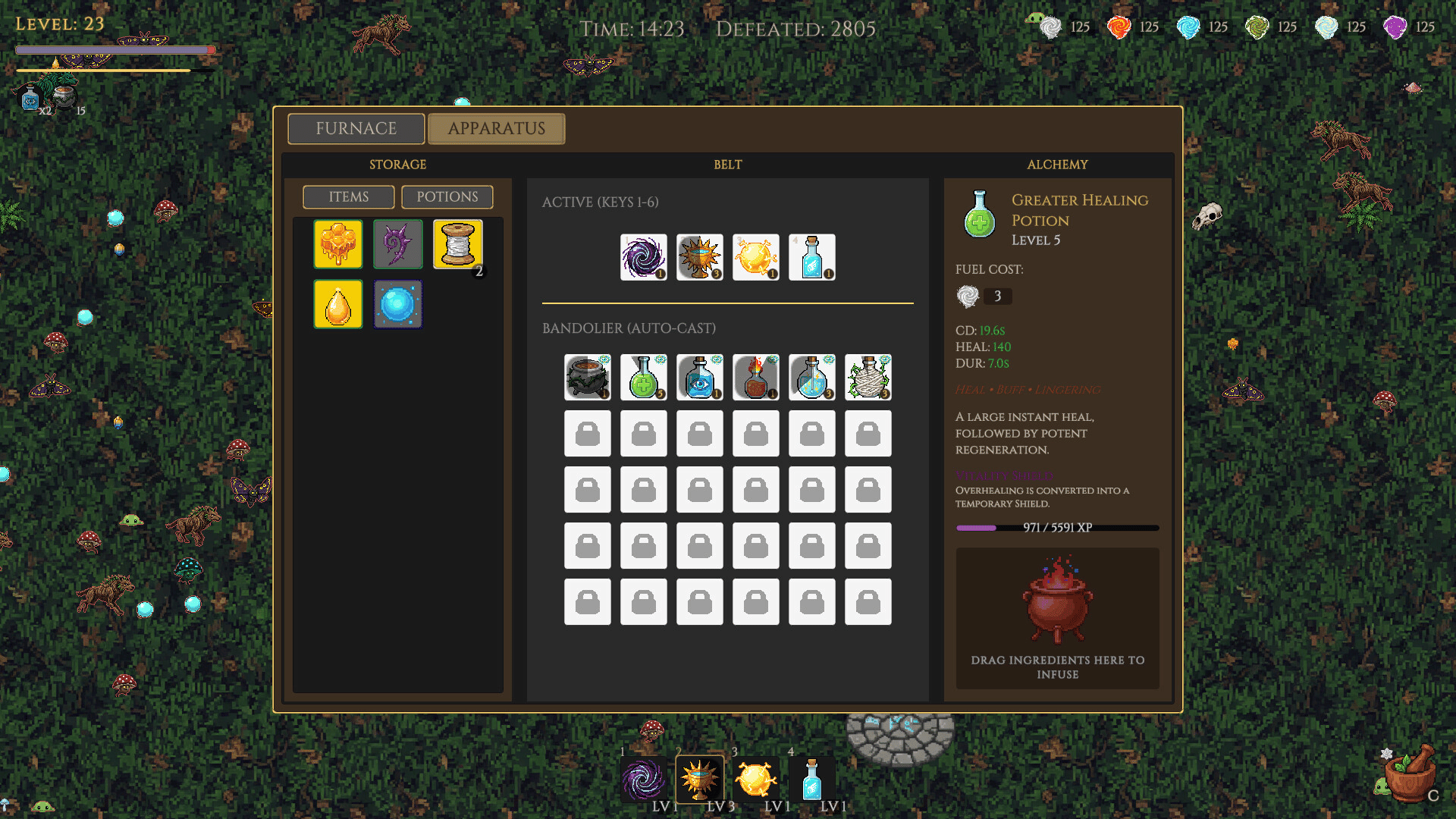 You are the Alchemist. The world is fuel. Flask & Fury is a frantic action roguelite where you must burn precious ingredients to power a lethal arsenal of potions. Build your Alchemical Engine, manage your Essence reserves, and survive an endless, exponential swarm.