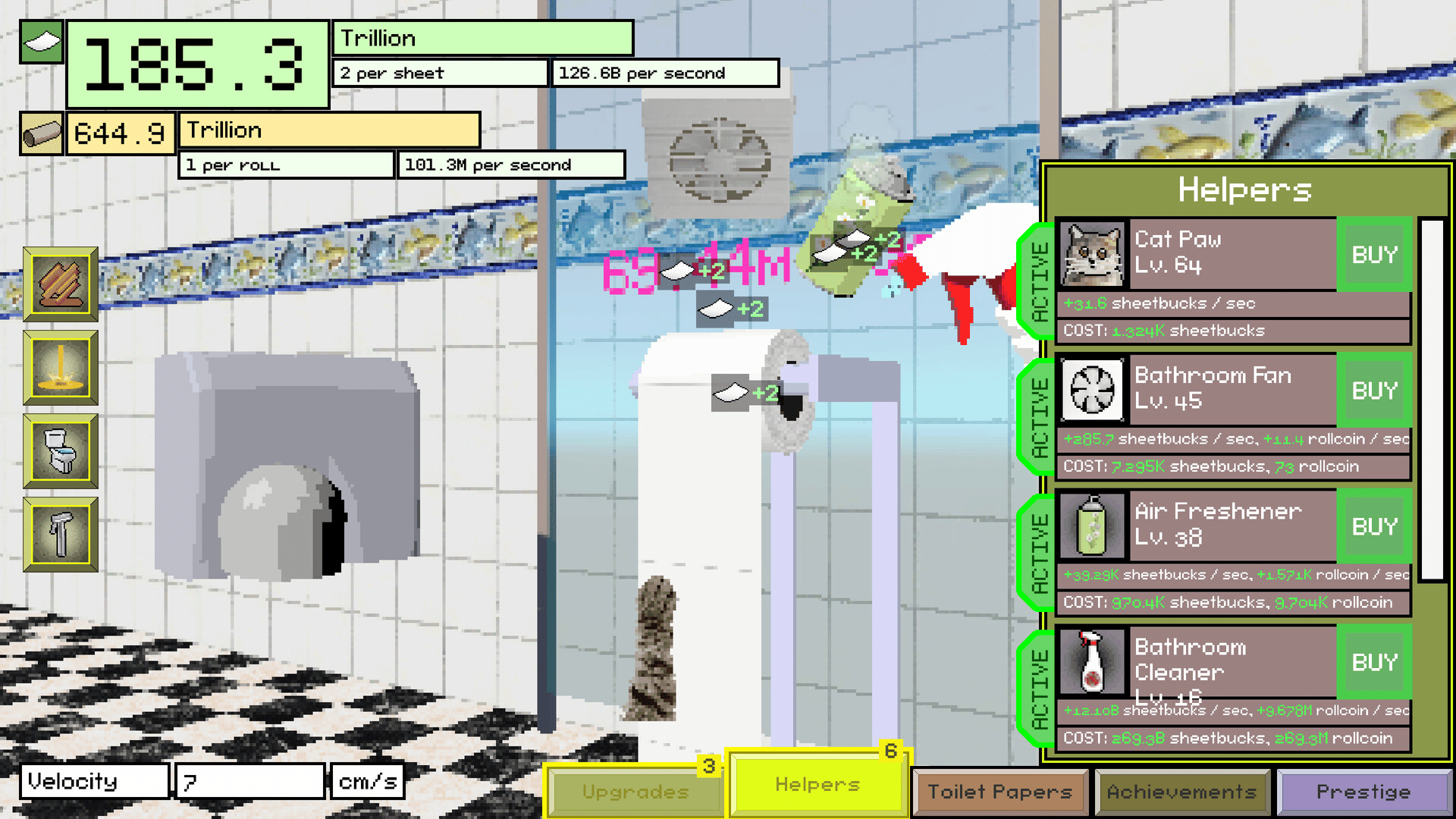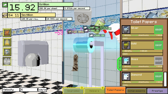 Toilet Paper Idle is a chill incremental idle clicker game about consuming as much toilet papers as possible with the help of helpers, skills, and upgrades. Discover special types of toilet papers as you progress, and be careful to not clog your toilet!