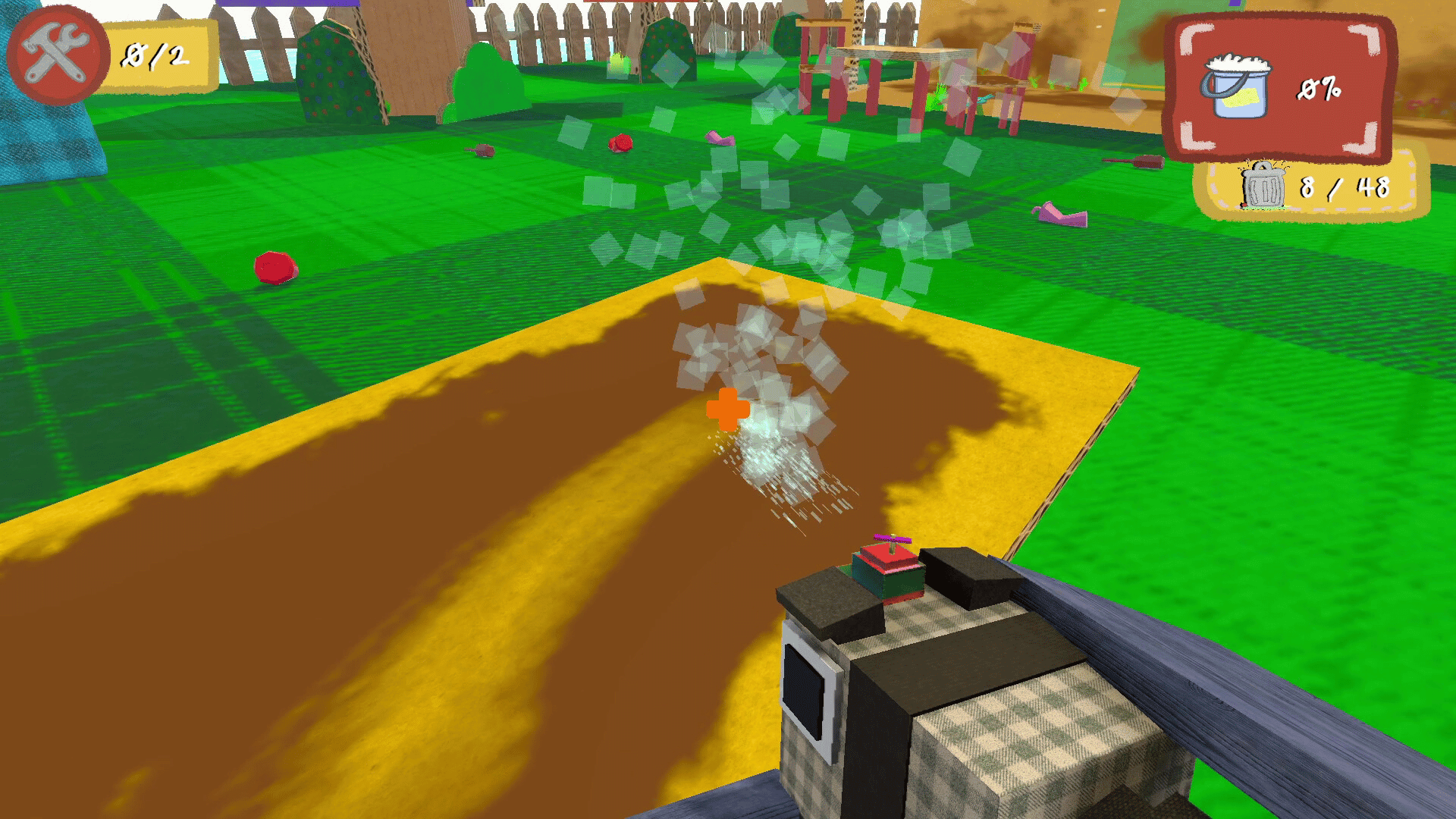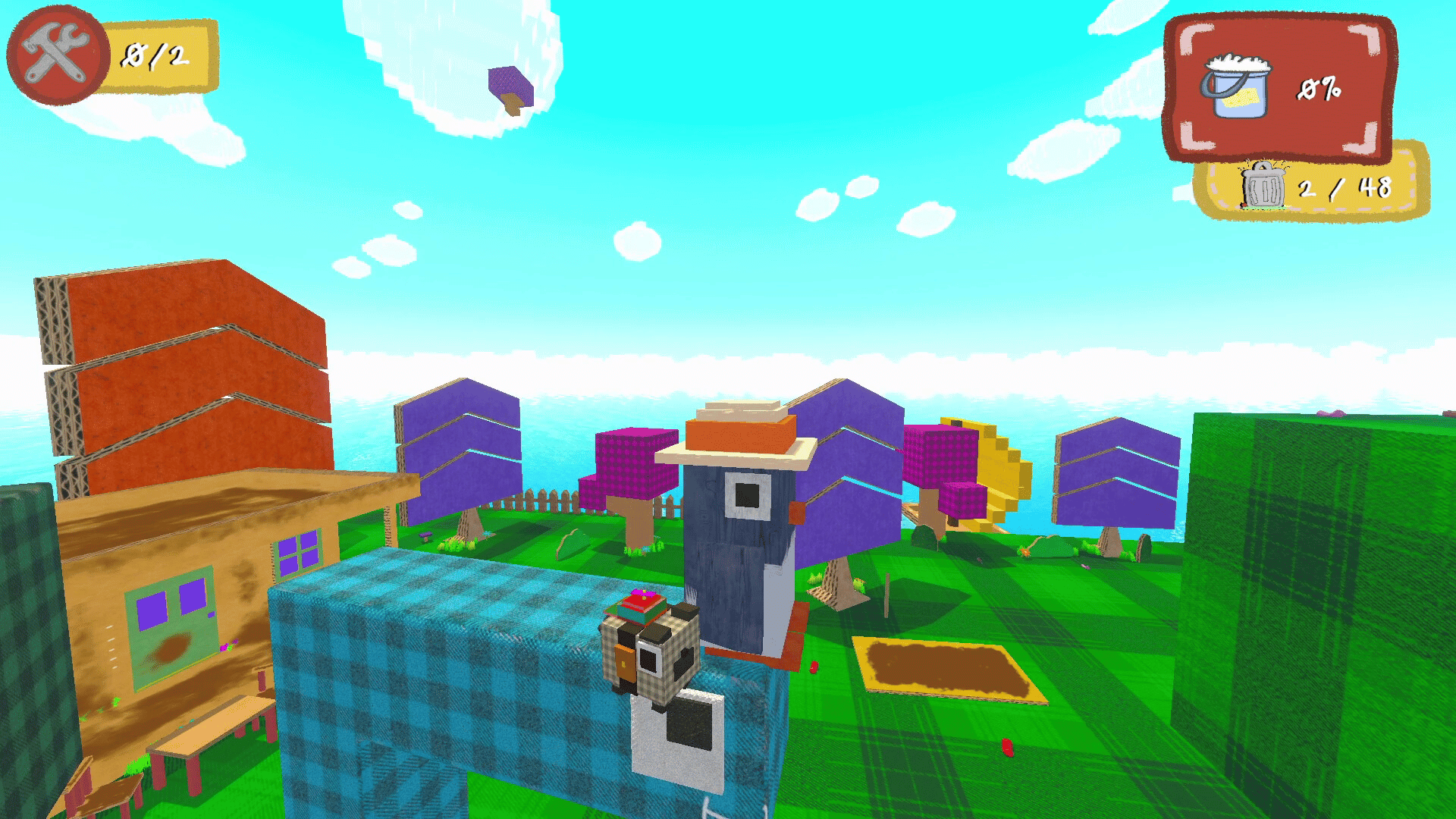A world built from cardboard, fabric and handcrafted creations. Everything is messy and covered in grime, but the Scrub Dudes team is ready for action. Climb, glide, collect trash, fix things and WASH it all clean. Enjoy this cozy handcrafted world.