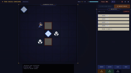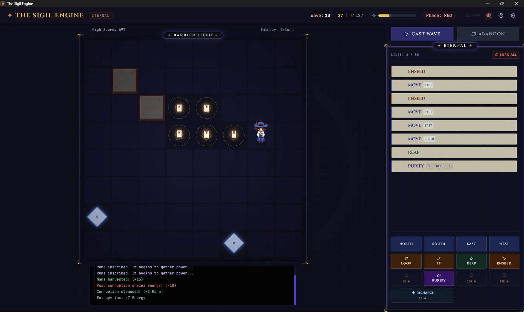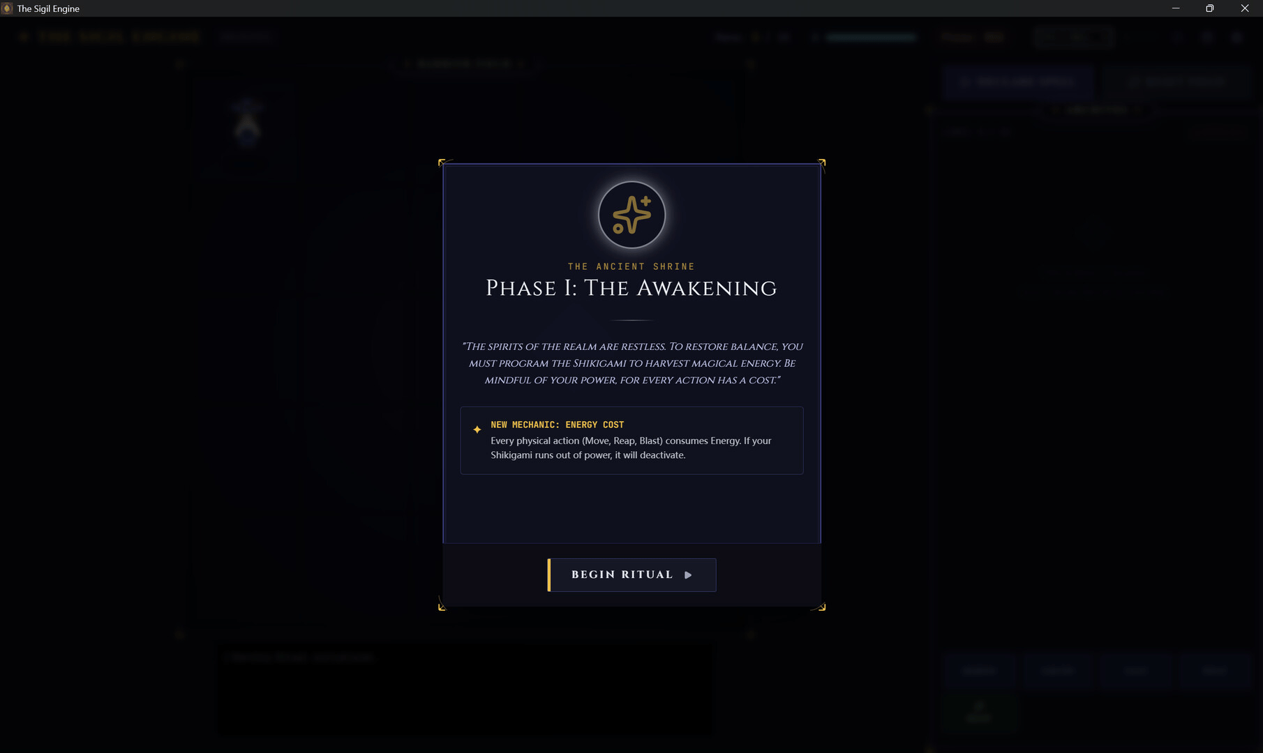 A magical automation puzzle game where you program a little shikigami automaton using visual spell blocks - explore, harvest energy, and cleanse corrupted sigils in a cozy fantasy world.