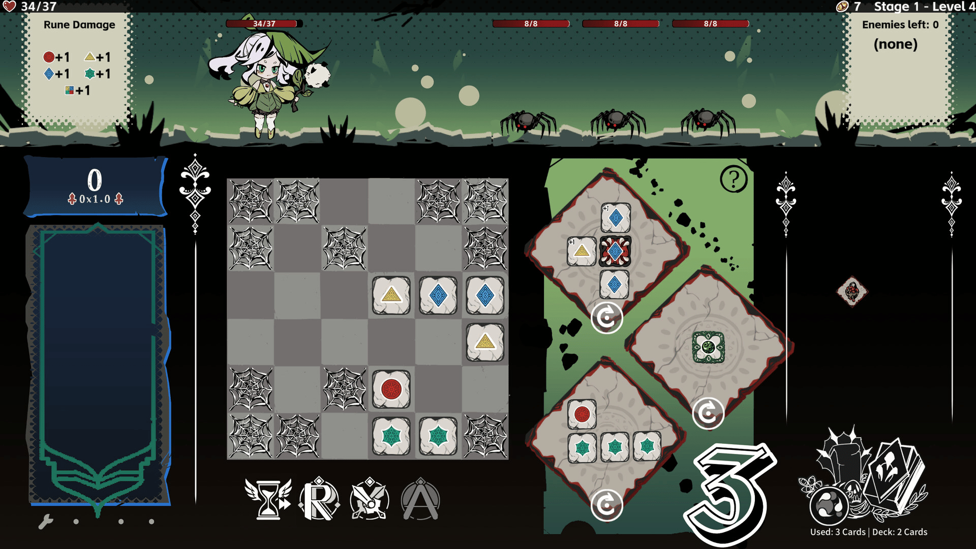 Play as Izzy, an elf born from the Mother Tree's fruit, in a misty eternal forest. Wield enchanted runes, combine puzzle cards for chain eliminations, collect relics, and resist the Dark Moon's corruption through cyclical trials to uncover the forest's truth.