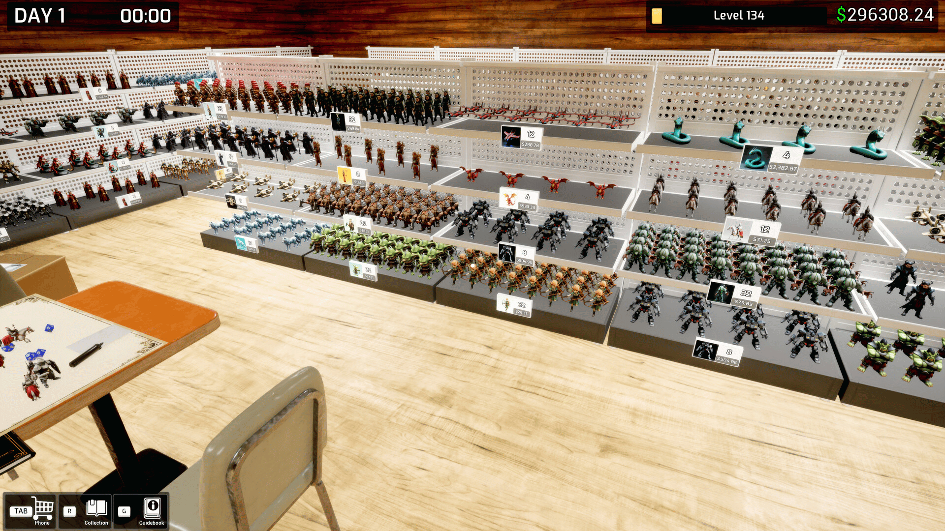 Tabletop Shop Simulator is a business simulation game where players manage a tabletop gaming store. The game focuses on stocking shelves with collectible figures, organizing product displays, setting prices, and serving customers. Players can sell tabletop miniatures, manage inventory, complete collectible sets, and expand their shop over time. The gameplay combines store management mechanics with collection progression systems, allowing players to grow their business while curating themed figure collections. The game features a first-person perspective and emphasizes economic management, customer flow, and collection-based progression within a simulation framework.