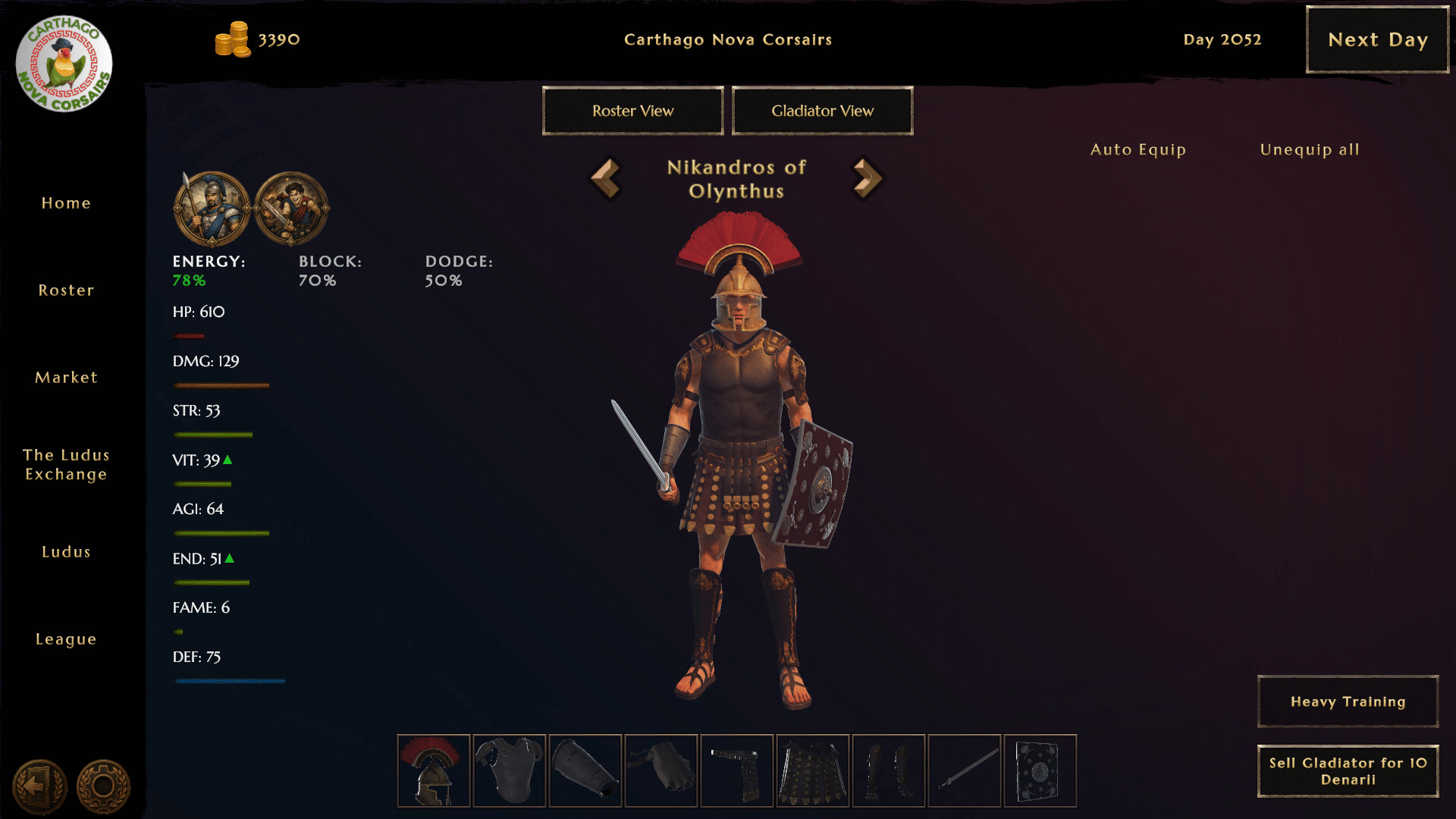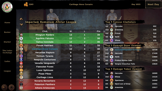 Ludus Magnatus: Gladiator Manager Simulator is a classic management experience set in an alternate Ancient Rome. Start in Division VII with one of sixteen clubs, recruit fighters, equip them from the market, and climb the ladder through fully simulated seasons and matches.