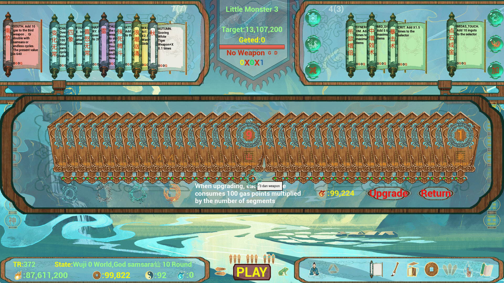 Crazy TaiJi is a casual card game inspired by traditional Chinese culture. In the game, you will use 64 sword-shaped cards to form combinations and activate spells to defeat monsters. With resources gained from battle, you can improve your abilities and break through to higher realms of cultivation.