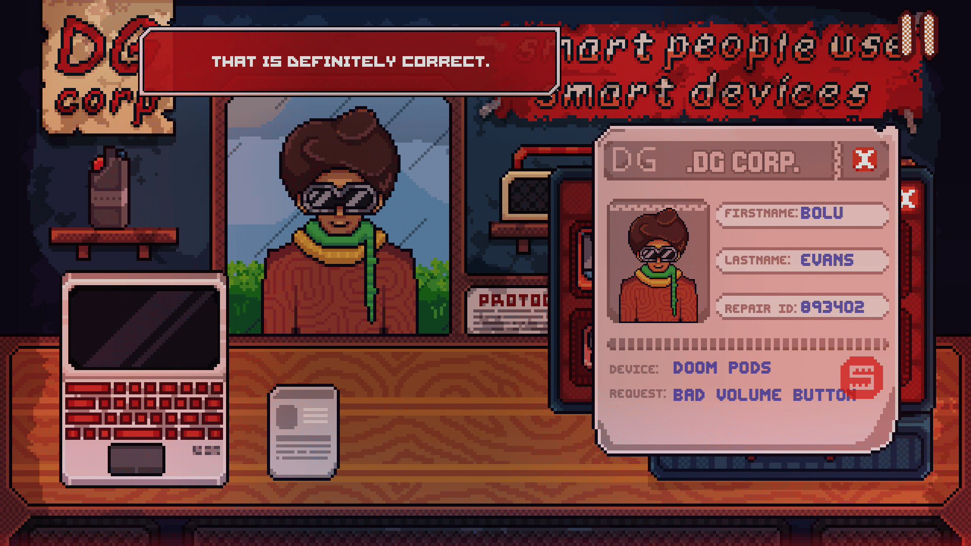 You work for a device company and your job is to verify paperwork of customers before handing their repaired device to them. Check, interrogate and confirm their identity. Beware of scammers in disguise coming to claim devices that are not theirs.
