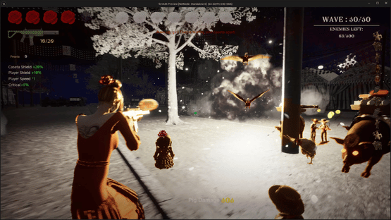 Feria 3000 is a fast-paced action roguelite set in a neon Andalusian fairground. Fight relentless waves of AI enemies with precision gunplay, aided by companions that dynamically build a procedural breakbeat soundtrack every run.