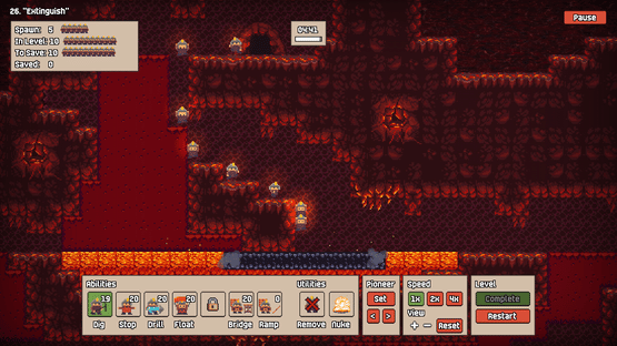 A Lemmings-inspired puzzle game where you guide pioneers through treacherous underground caverns by strategically assigning abilities like digging, building, and blocking to overcome obstacles.