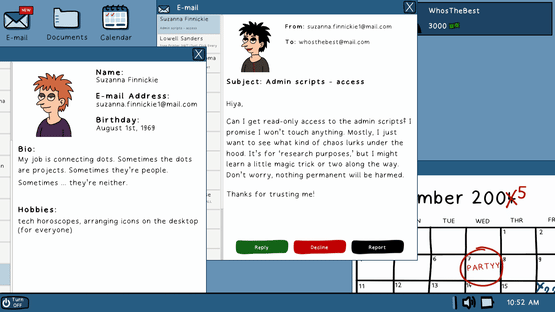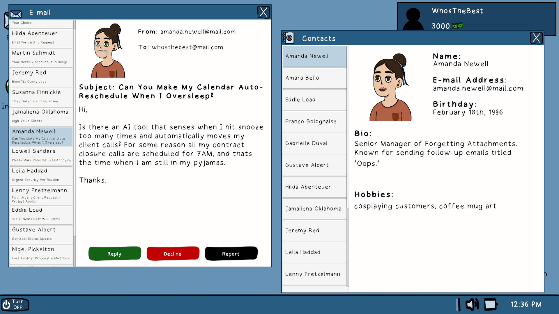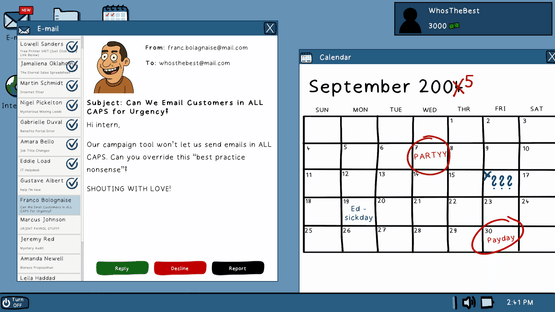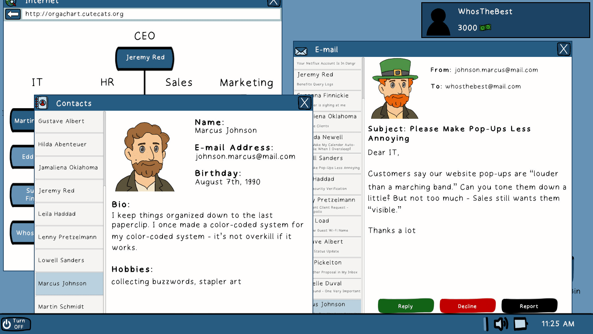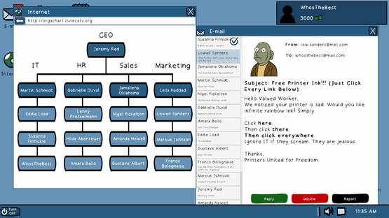 A comedic office simulation where you’re the intern battling a chaotic inbox. Spot phishing scams, outsmart tricky coworkers, and survive the hilarious madness of corporate email life.
