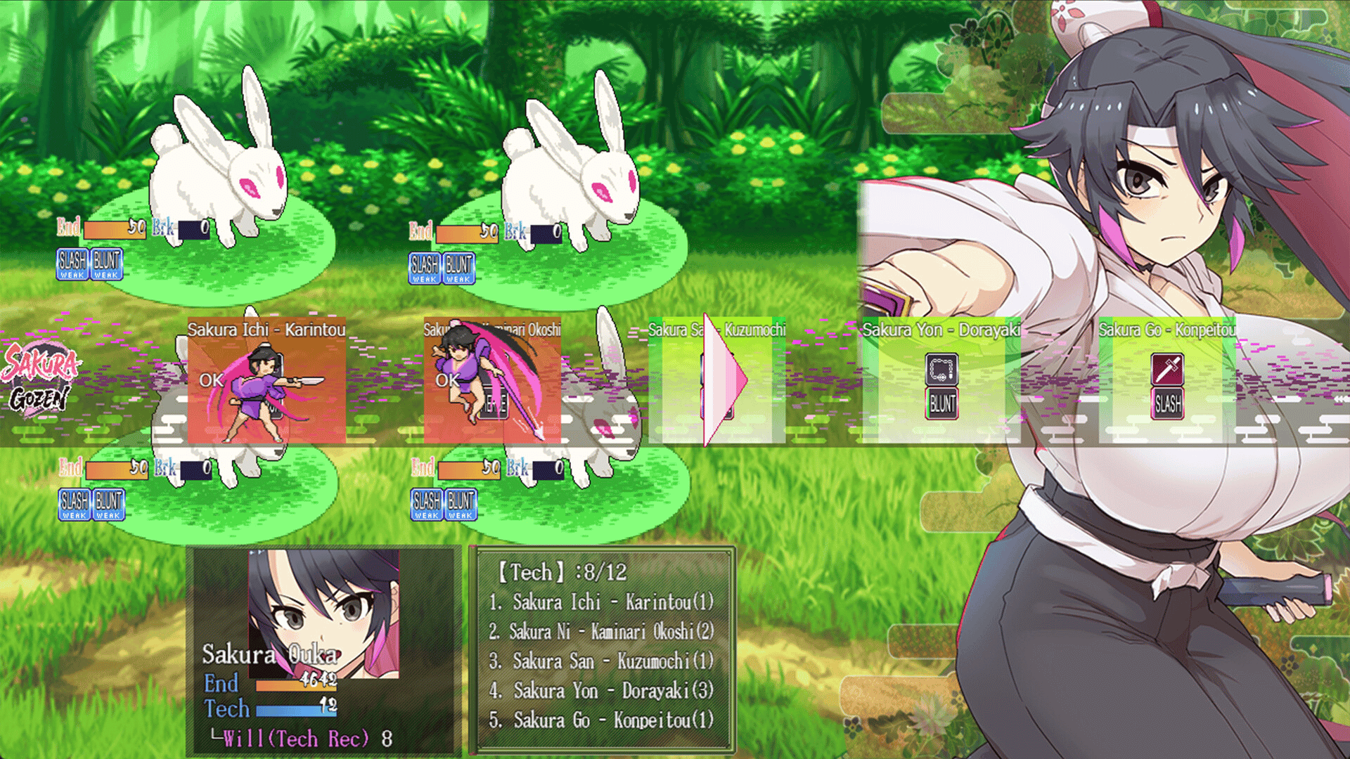 In Ouma, samurai Sakura Ouka, jobless and foolish, loses her home. She aids Suzune, sparking a quest to revive the Sakura Style. They aim for the Gozenjiai, facing trials in a Japanese-style action RPG. Complete requests, build reputation, and master thrilling battles to win!