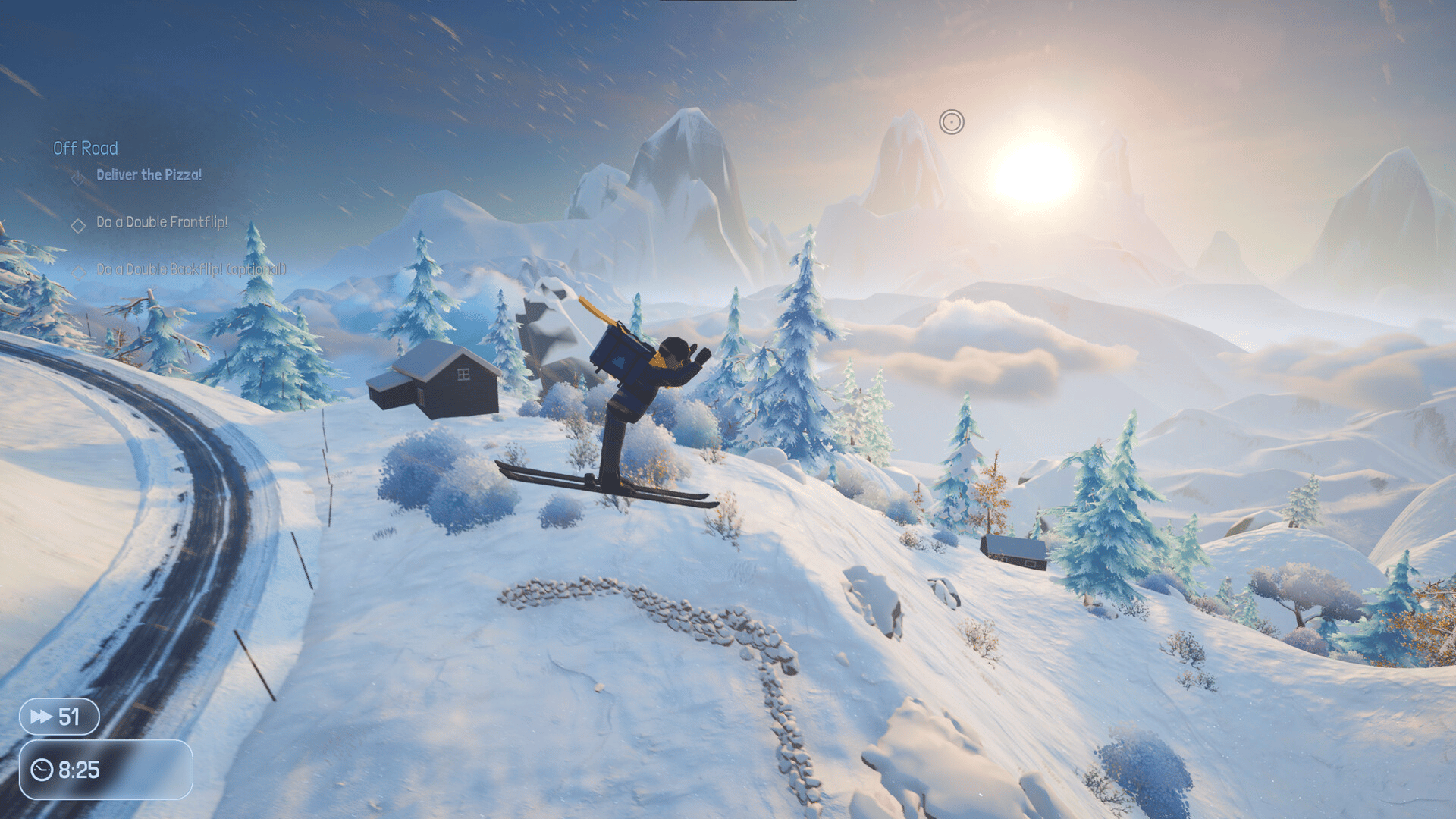 A difficult fully physics based ski simulator where you deliver items down insane slopes. The controls are few, but difficult to master.