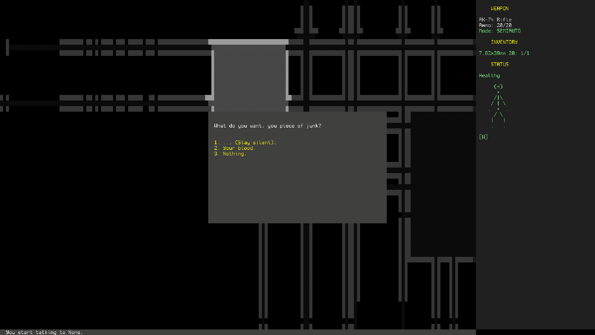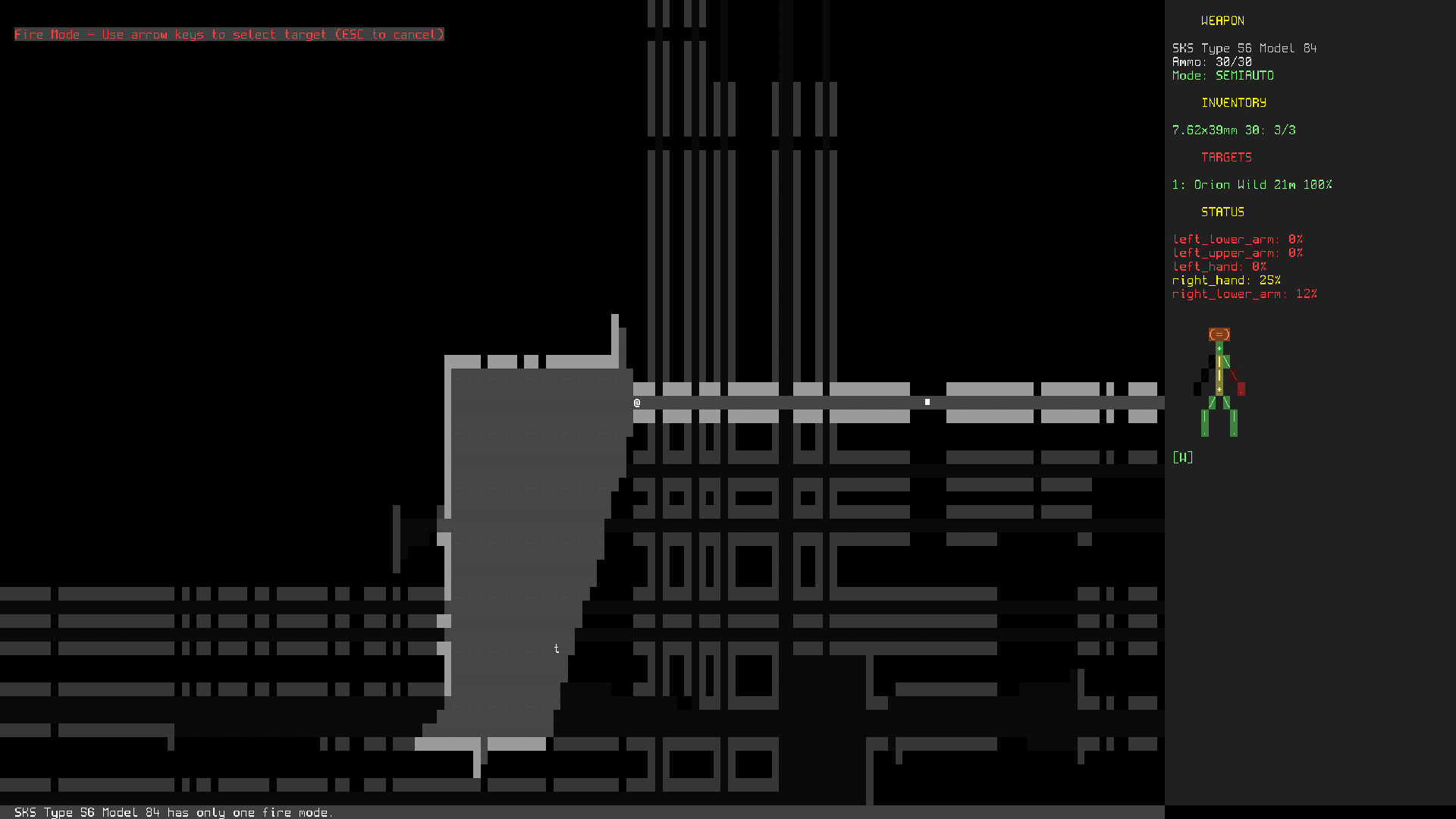 Turn-based roguelike where you play as a rogue bot surviving in procedurally generated cities. Features sophisticated character development and in depth combat using a detailed anatomical damage system .