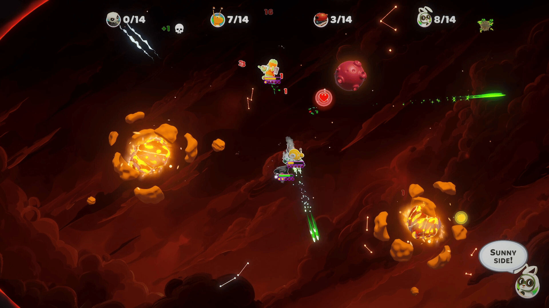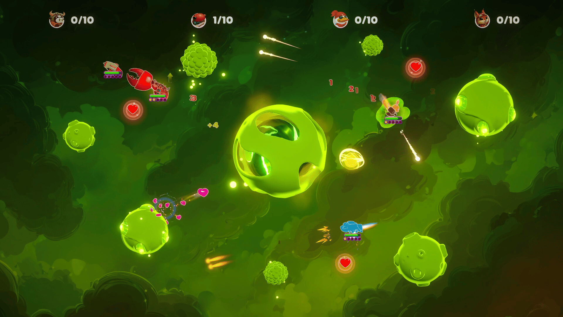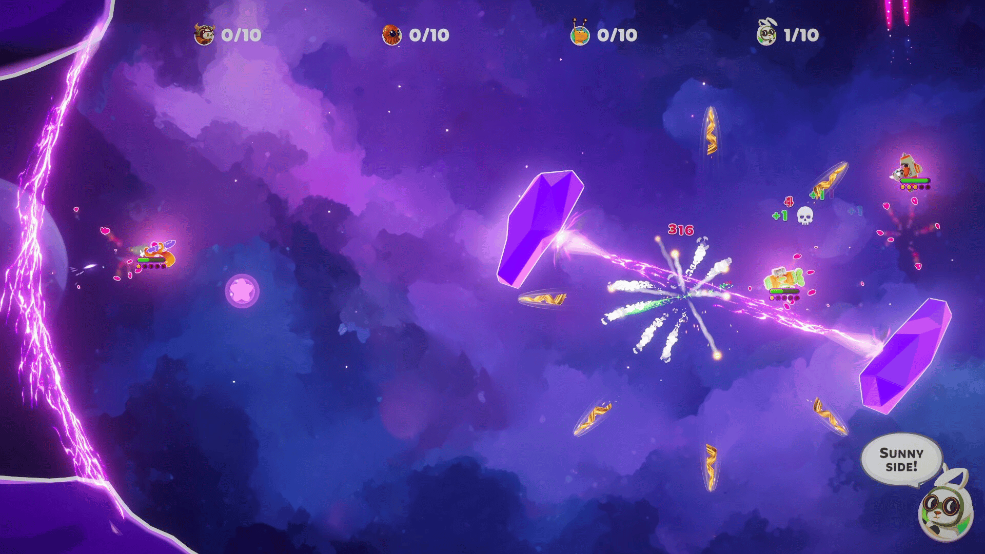 A couch/online multiplayer party game for 2–4 players. Choose from a roster of unique characters, each with their own weapons and abilities, and compete in intense versus matches on varied space arenas filled with environmental hazards.