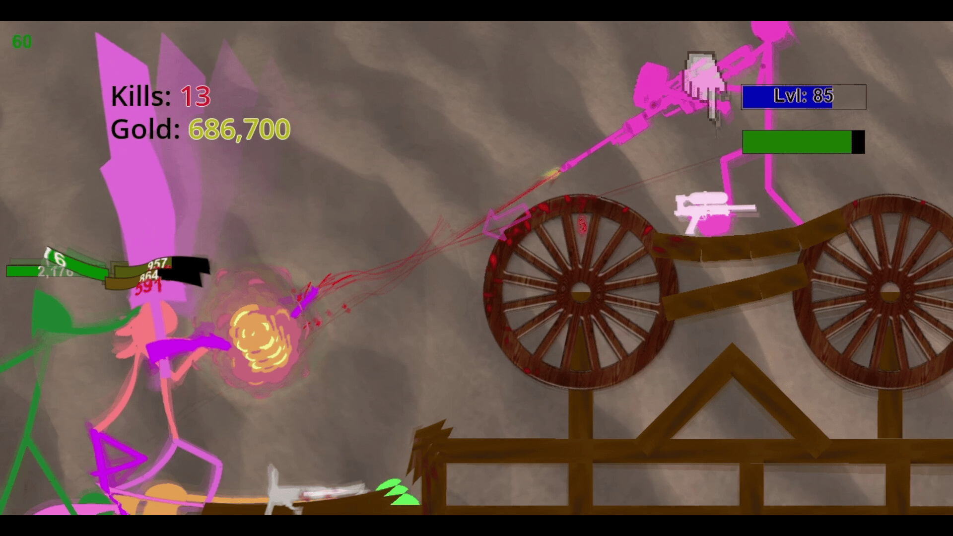 Level up and unlock the ultimate weapons in a bloody physics playground! You must kill countless enemies to increase your stats and become the greatest warrior. Dual wield over 75 unique and fun weapons in 7 different modes across nearly 100 different levels with up to 2 players in co-op or VS.