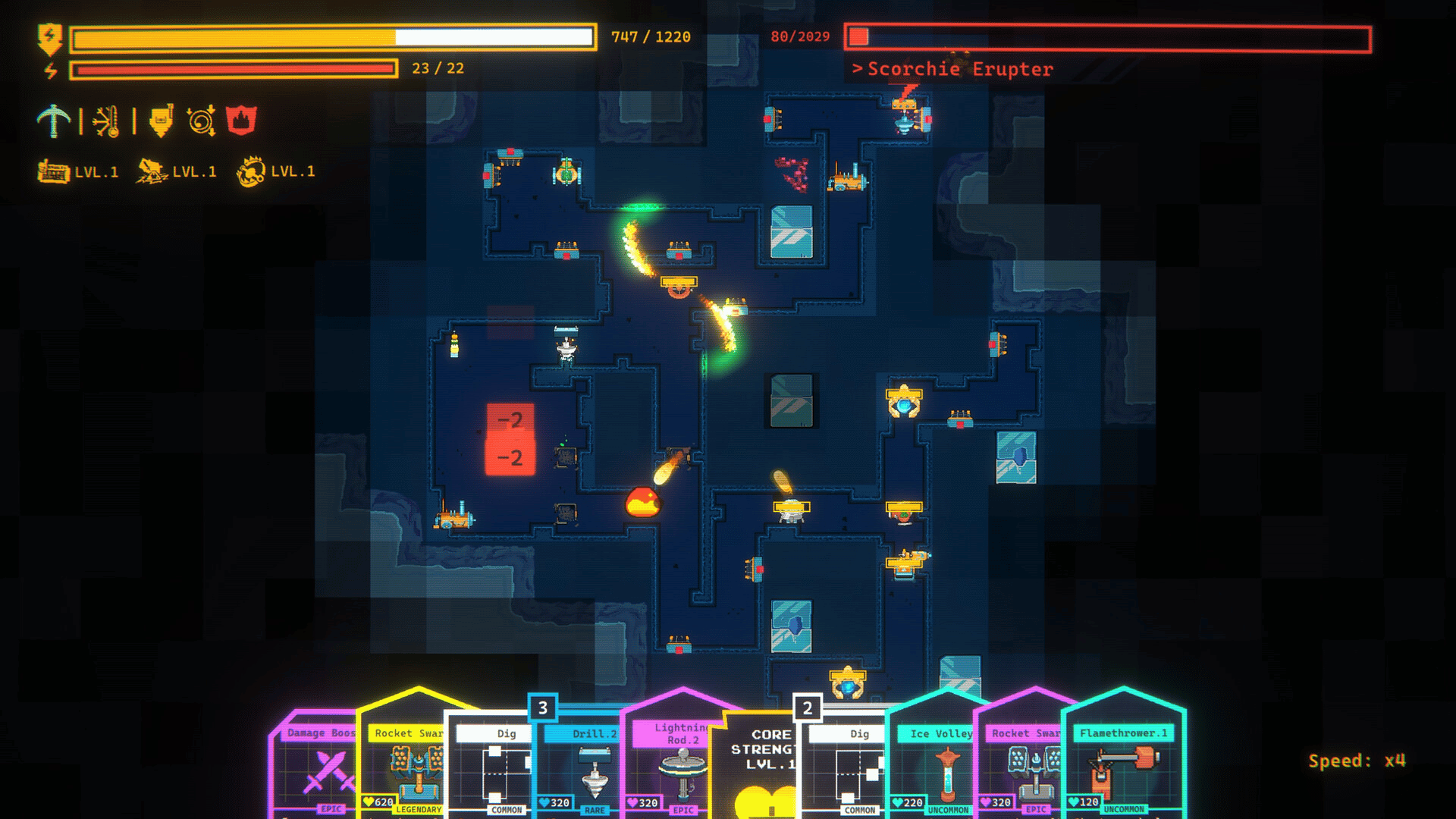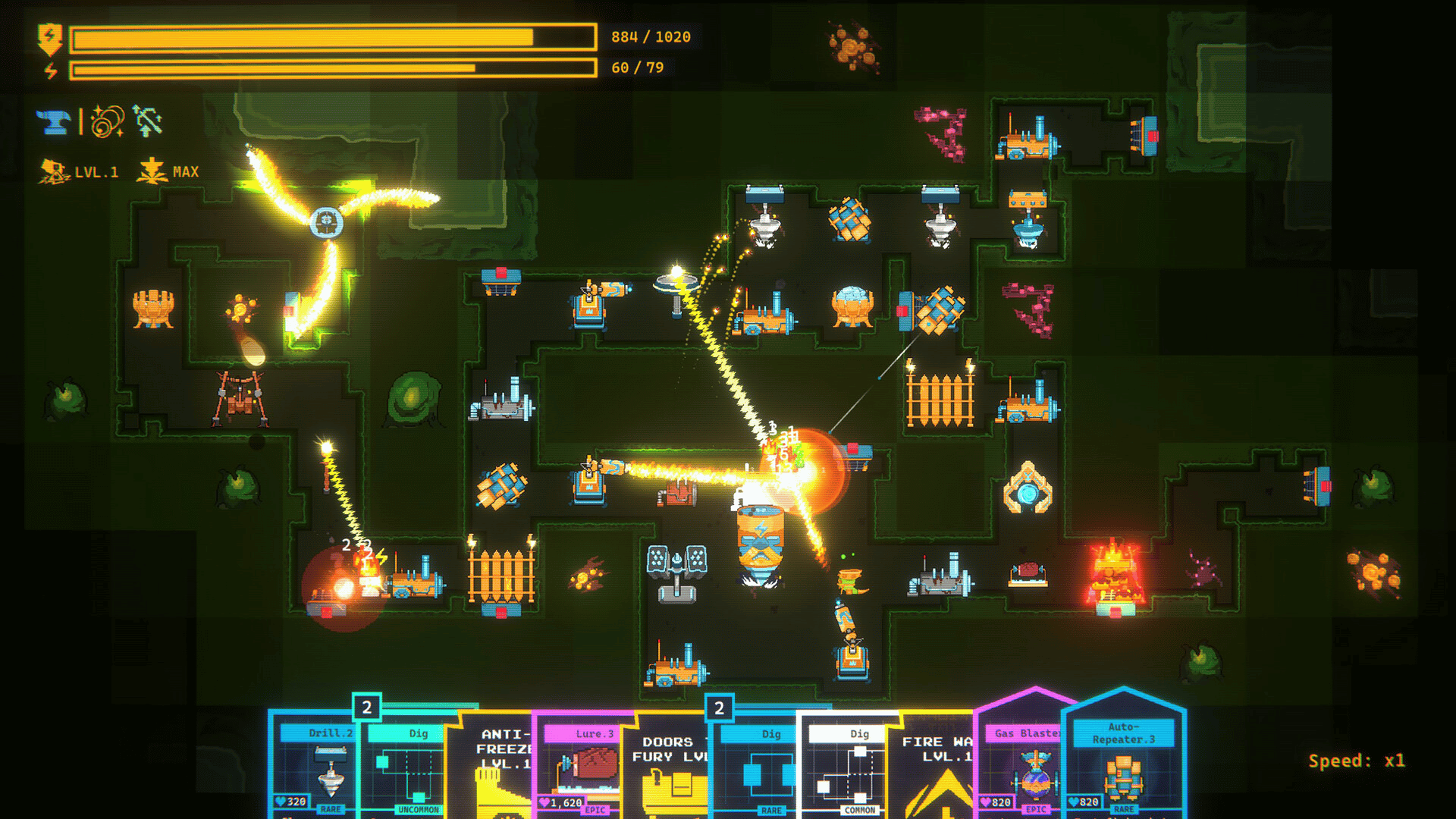 A roguelike tower defence with a card twist! Protect your mine and rescue your crew after crash landing on a slime infested moon. Buy cards and booster packs, expand your tunnels, find crazy combos and squish those frackin’ slimes. Dig, build defend – and get off this B&*@!n Moon!
